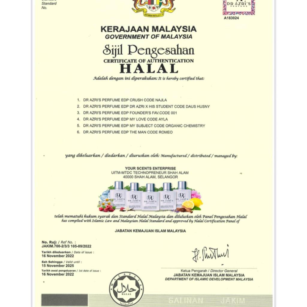 Dr. Azri's Perfume - Graduation Minyak Wangi Keluaran UITM Mesra Solat Halal untuk lelaki dan wanita