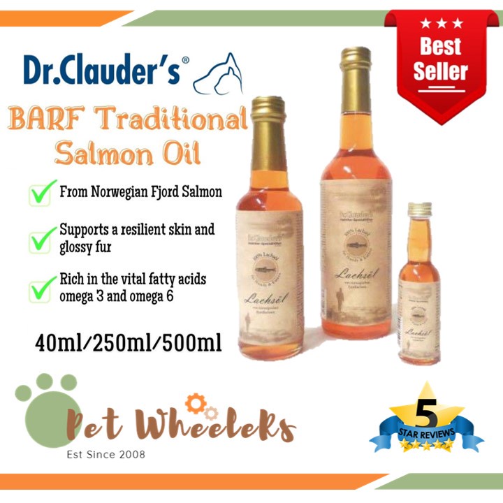 Dr.Clauder's BARF Salmon Oil Dogs & Cats (250ml/ 40ml/ 500ml) Shiny Coat and Healthy Skin for Pet Dr Clauders