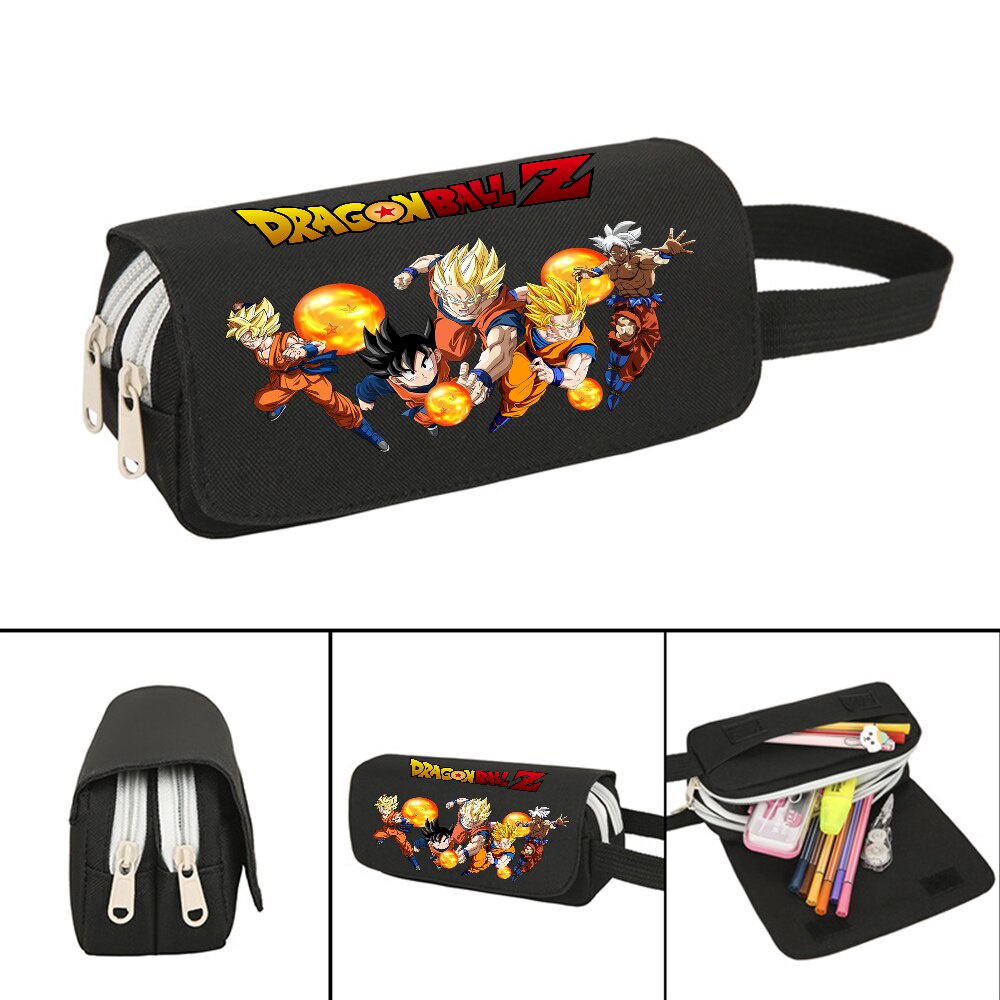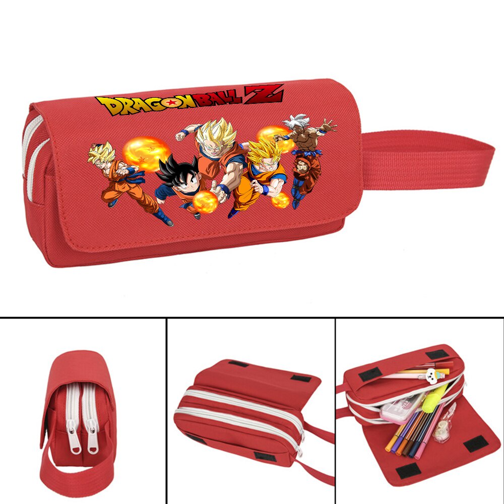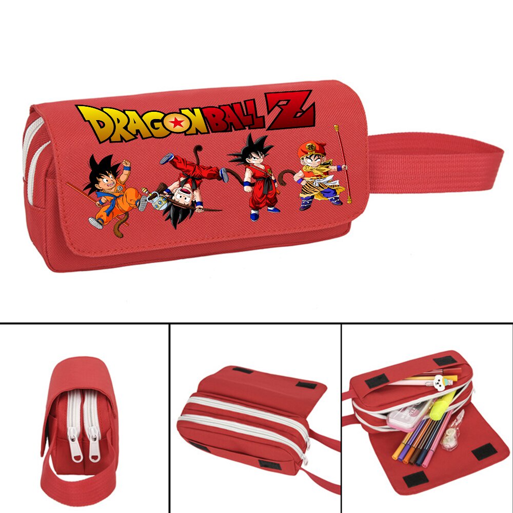 Dragon Ball PencilCase Double Zipper Son Goku Son Gohan Stationery Bag Student School Pen Case Box Large Capacity Pencil Case