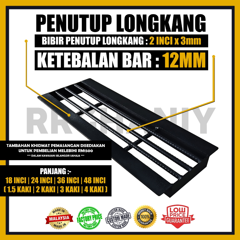 Drain Cover (Heavy Duty) Penutup Longkang Besi Longkang U Support 4 Wheel Truck Drain Grating 18 inch - 48 inch (Length)