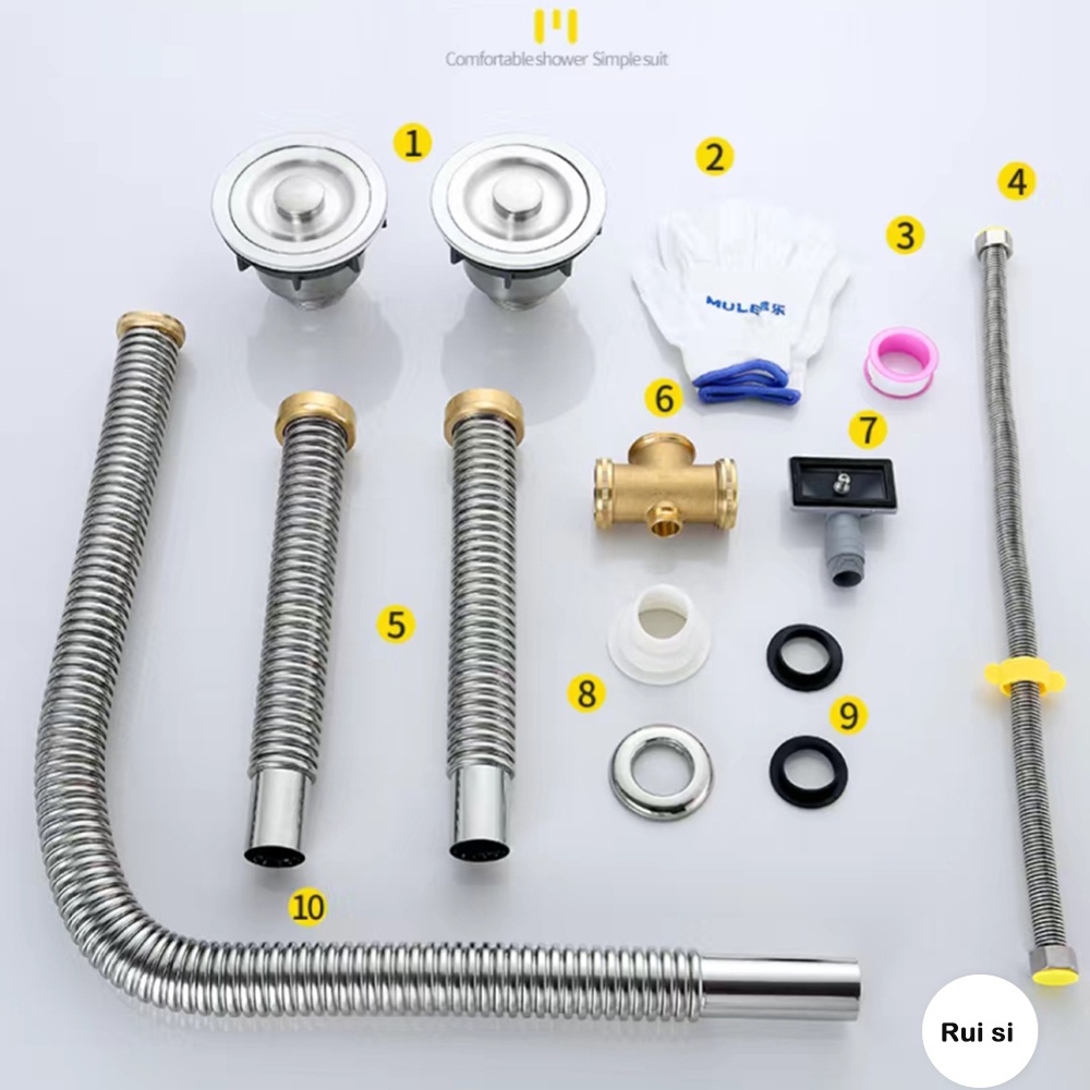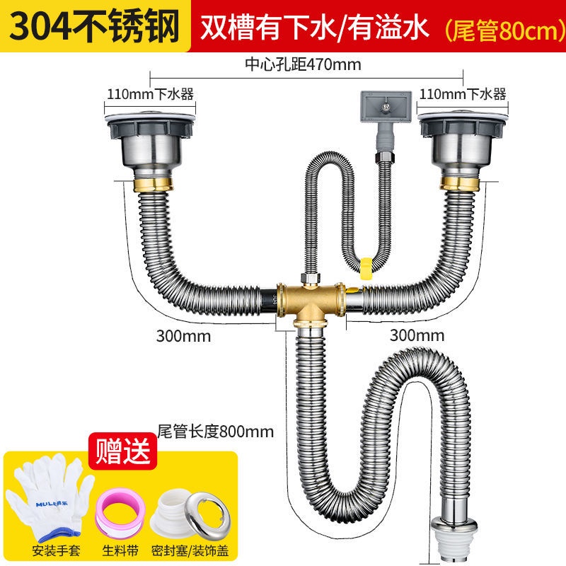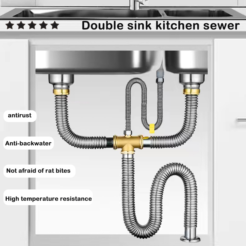 Drain Hoses Basin Sink Stainless Steel Double Slot Overflow Pipe Sewer Deodorant for Kitchen