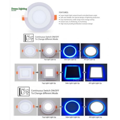 Dream Lighting / Double Color 6"inch 4"inch Blue Warm / LED Recessed Downlight / Plaster ceiling / LED panel down light