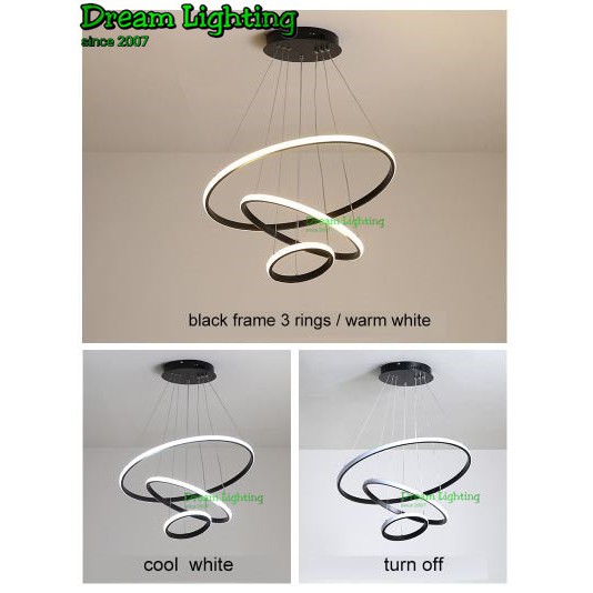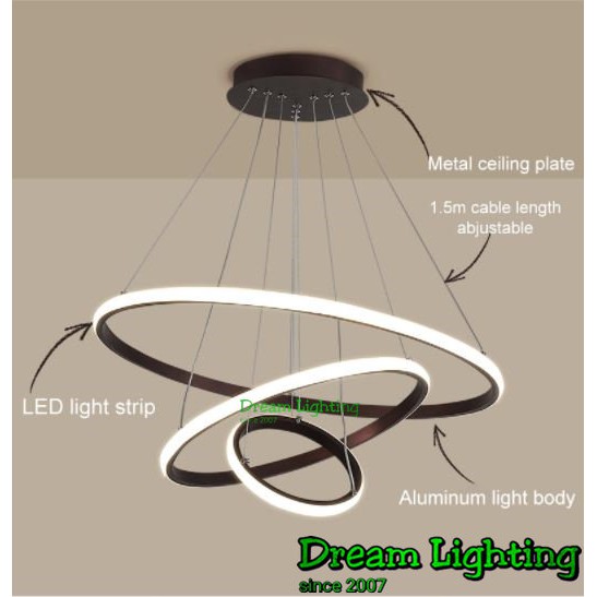 Dream Lighting / LED modern Chandelier pendant light Ceiling 3 Ring / Lampu Hiasan ruang tamu lampu gantung lampu siling