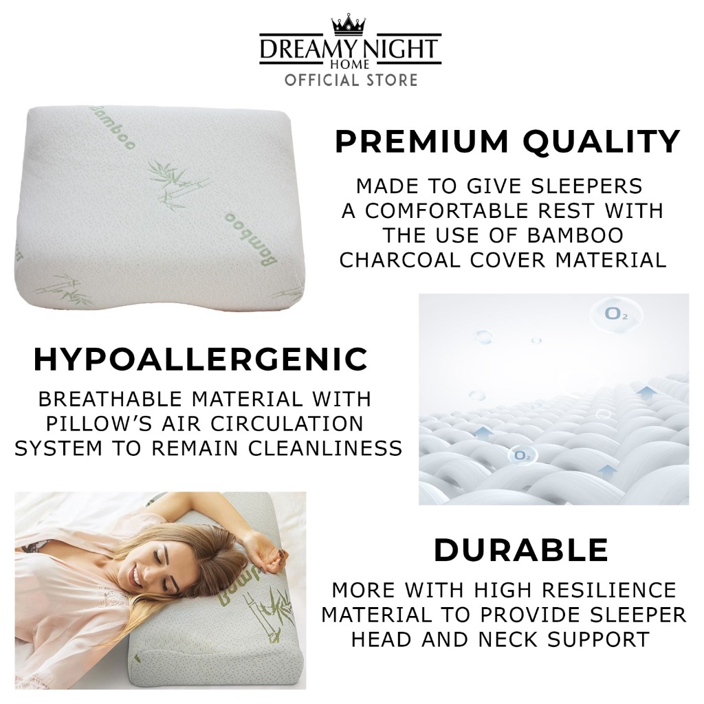 Dreamynight Home Anti-Snore Bamboo Memory Foam Pillow Neck Support Pillow (55cm x 36cm)
