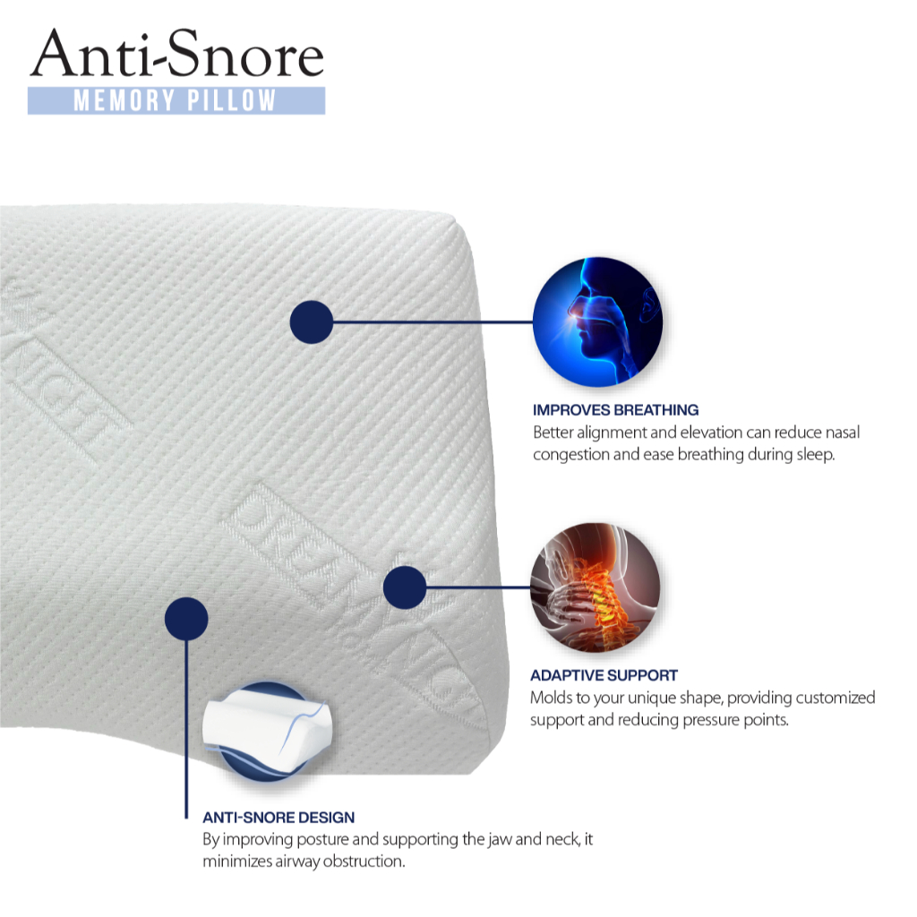 Dreamynight Home Anti-Snore Memory Foam Pillow Neck Support Pillow (55cm x 36cm)