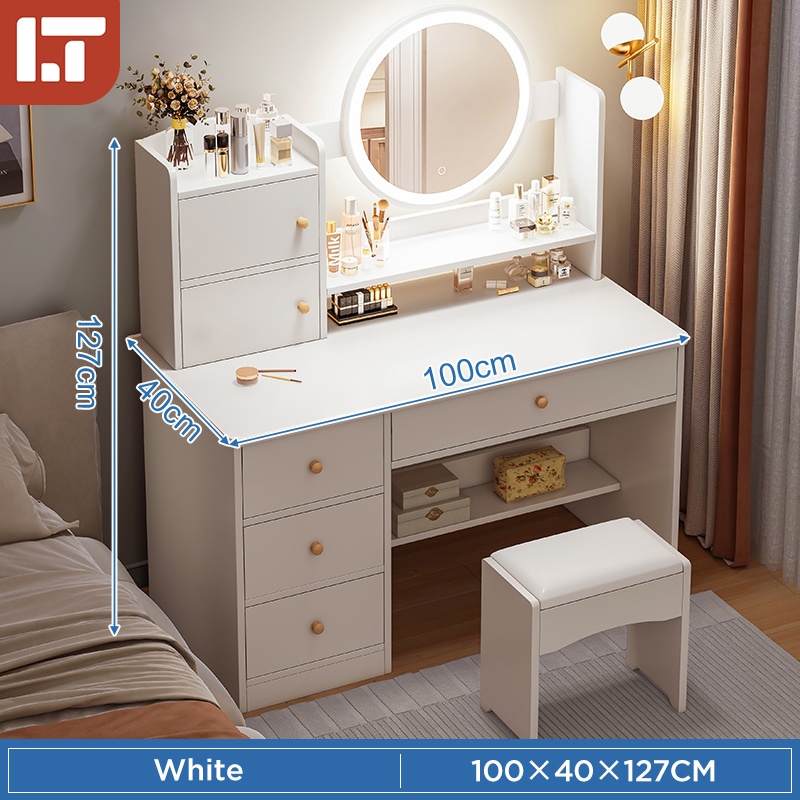 Dressing Table Mirror Led Light Meja Solek Makeup Table Dressing Table With Mirror Drawer Storage Bedroom Comestic Table Multipurpose Vanity Table