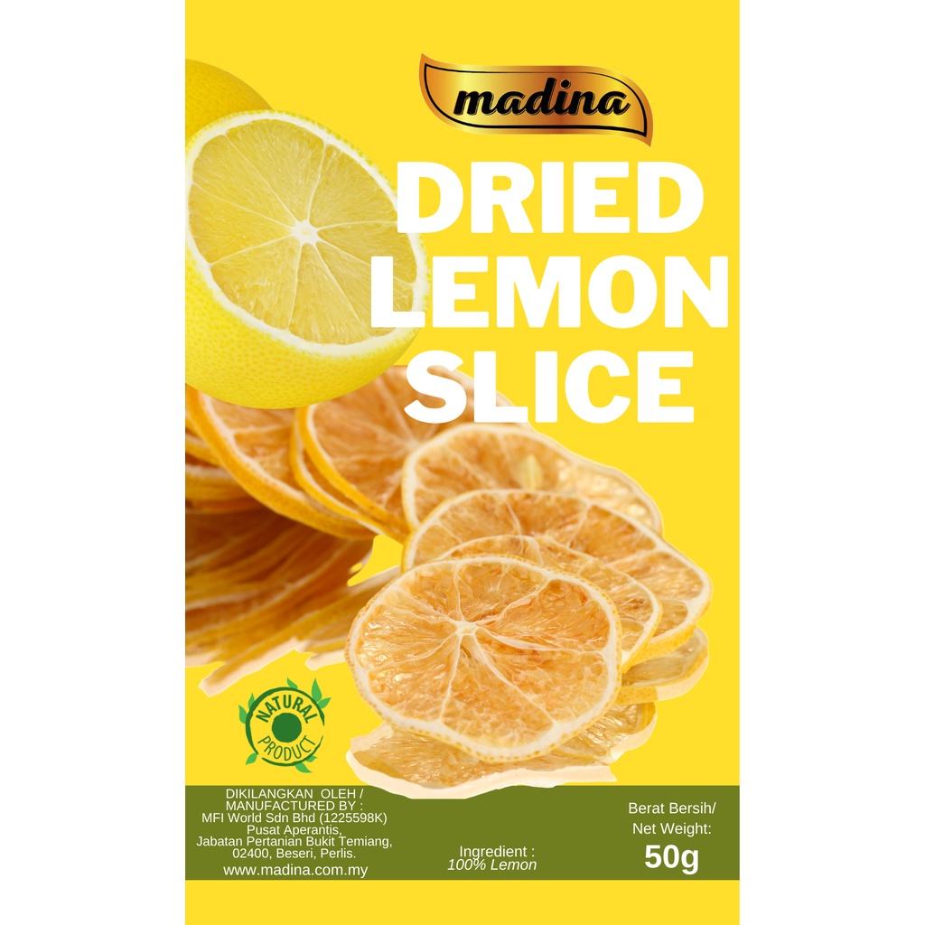 Dried Lemon Slice (50g/100g) Natural Dry Lemon Slices / Limau Kering Natural - MADINA HALAL