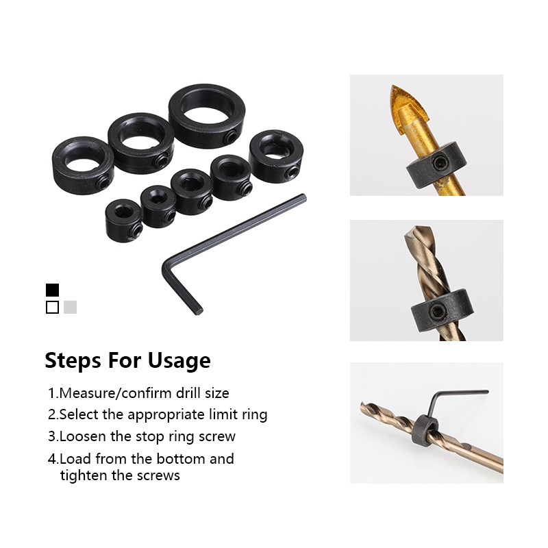 Drill Locator Woodworking Drilling Stop Adjustable Depth Collars Limit Ring Dowel Shaft Chuck Positioner Ring Drilling Positioner Spacing Ring Locator Tool