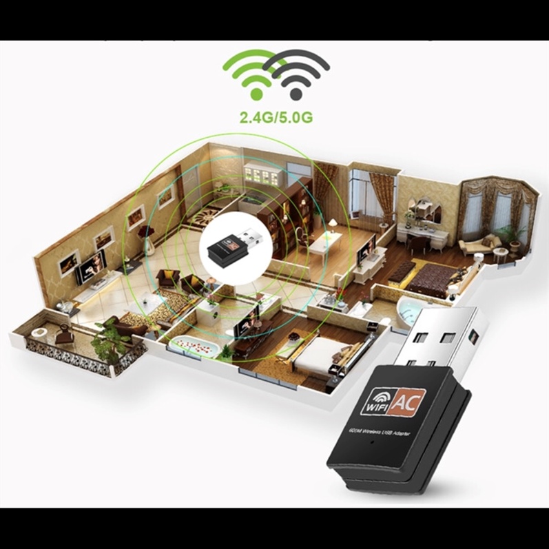 Dual Band AC 600Mbps USB WiFi Adapter for PC Wireless Network Adapter with Dual Band 2.4GHz 5GHz Windows MacOS