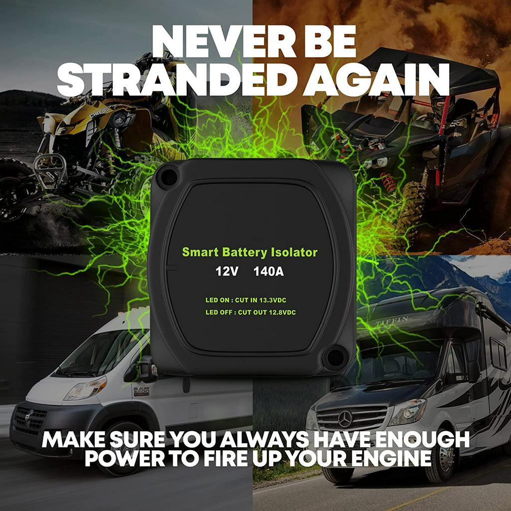 Dual Battery Isolator 12V | Automatic Battery Disconnect Switch 12V 140 Amp Voltage Sensitive Relay (VSR) | Car Battery Charger Switch Also for ATV, Boats, RV's, Off-Road Vehicles