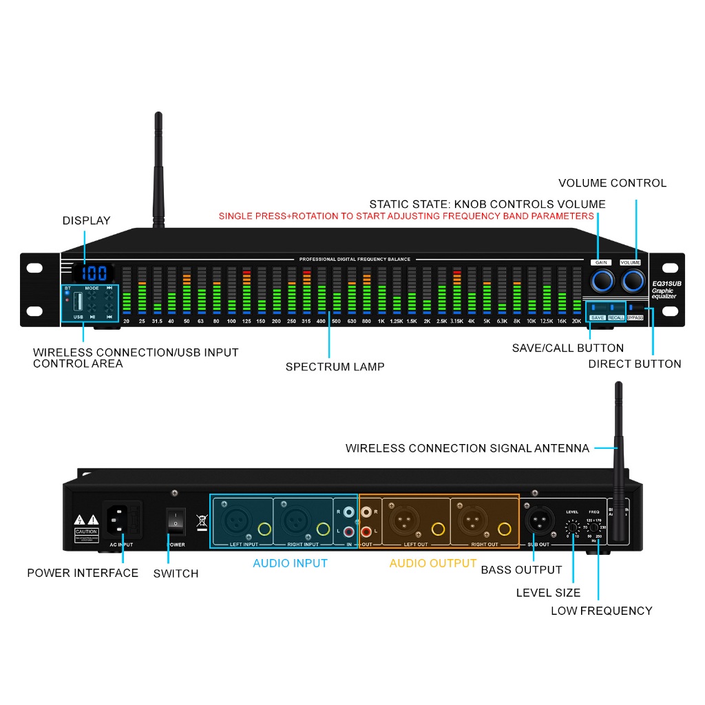 Dual Channel Graphic Equalizer Led Digital Audio Sound Processor Sound System Dj Equipment Audio Equalizer
