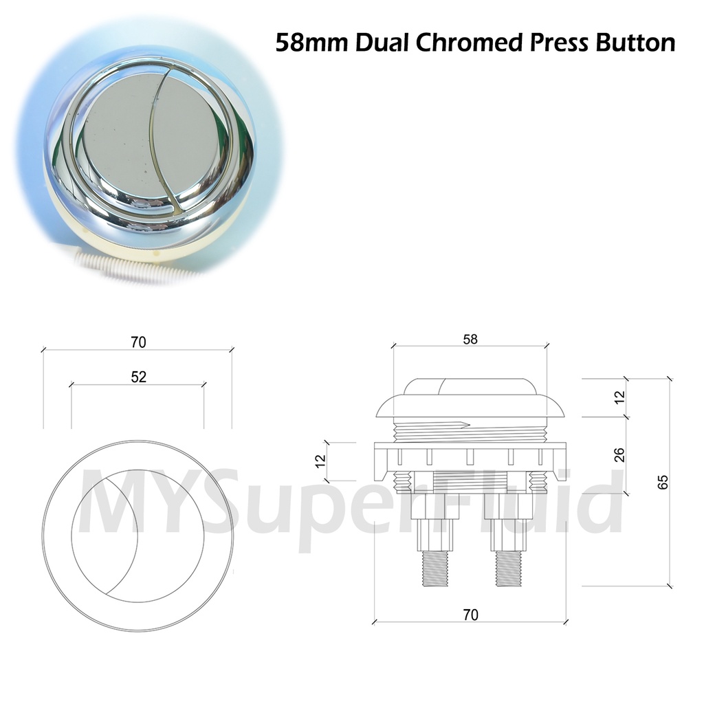 Dual Flush Push Button Outlet Valve 50mm - Close Coupled Cistern Water Saving Dual Flush Push Button