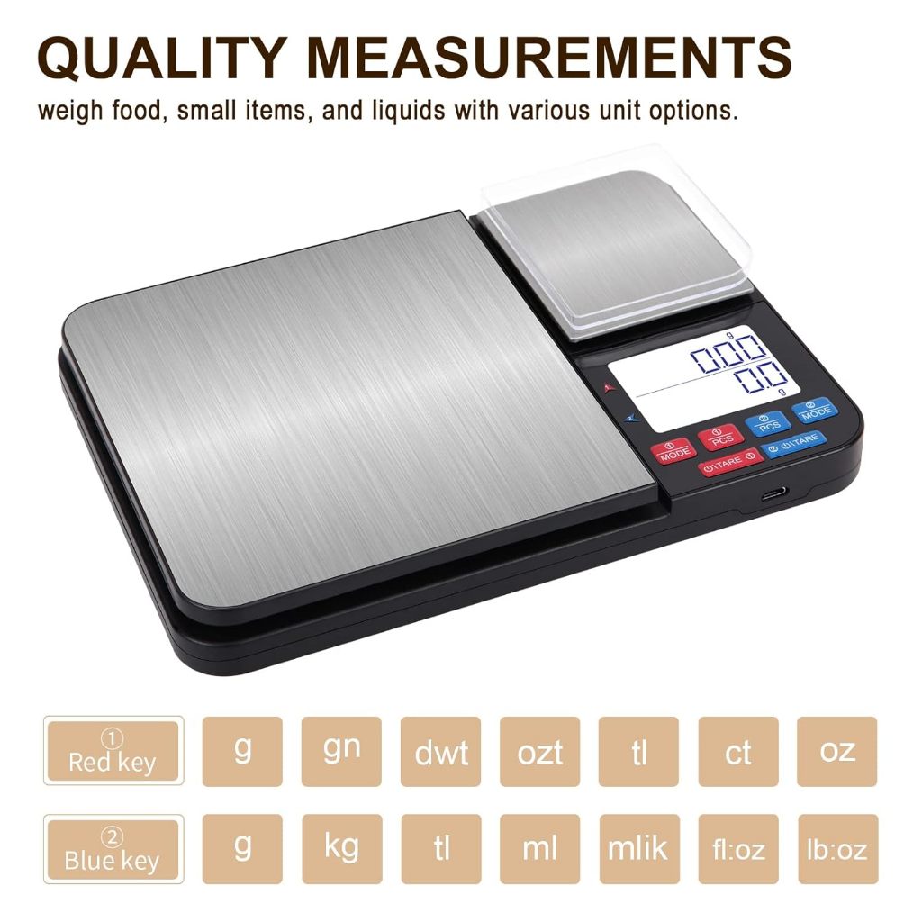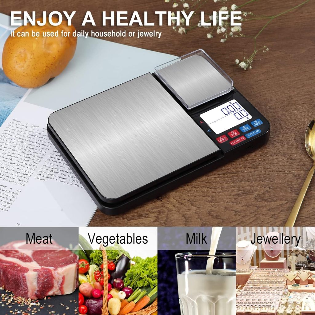 Dual Platform Digital Kitchen Scale 0.1g/0.01g LCD Digital Precision Scale Stainless Steel Digital Kitchen Scale Food Scale Bakery Scale
