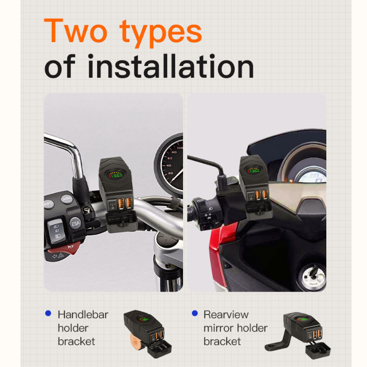 Dual Port 12V Waterproof Motorcycle Usb Charger Voltmeter Sequential Digital LED QC3.0 Fast Phone Power Adapter Socket Switch