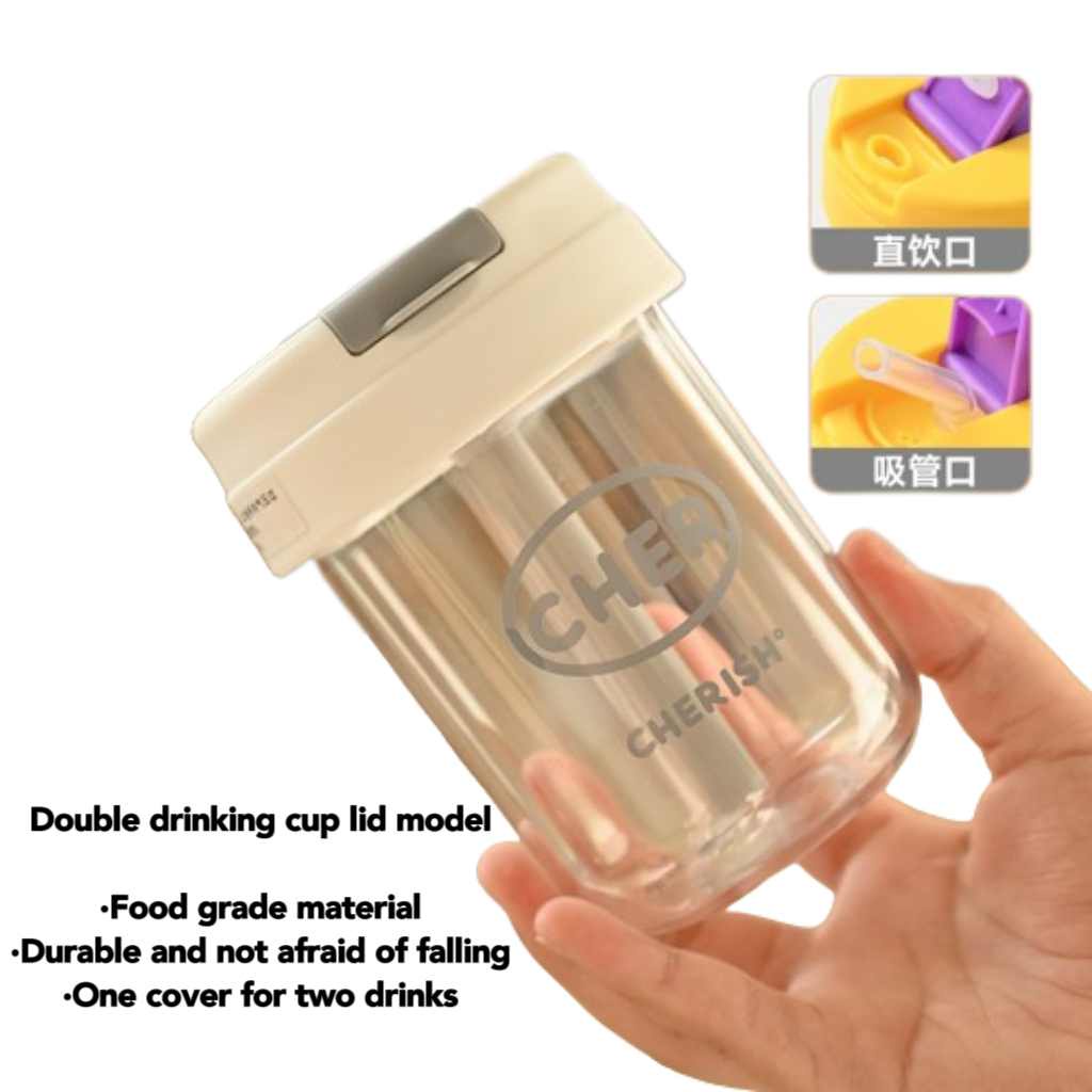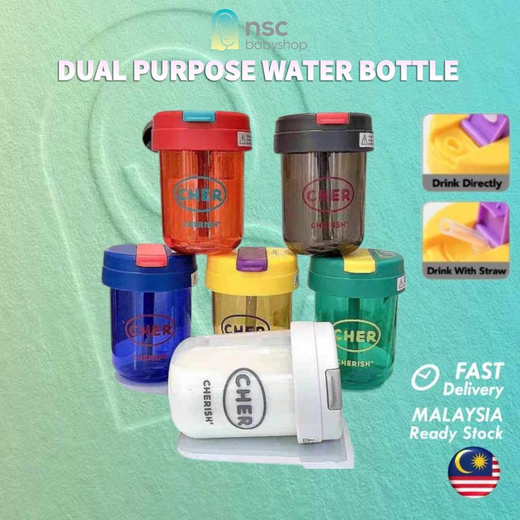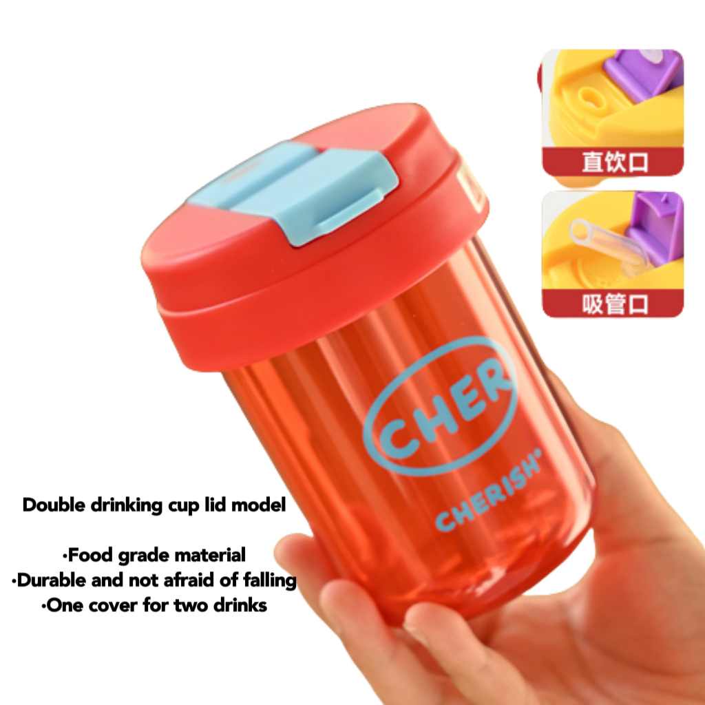Dual Purpose Water Bottle WIth Straw Portable Cute Mini Bottles Kid Drinking Cup Botol Air Viral Budak