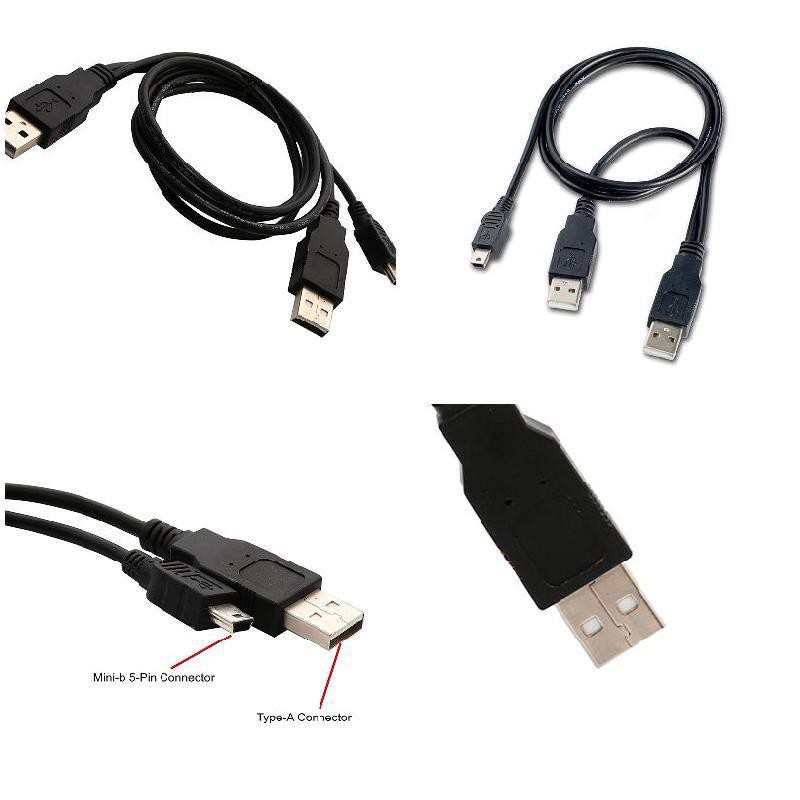 Dual USB 2.0 Type A to USB Mini 5-Pin Type B x1 Y Data & Power Cable( For External HardDisc Enclosure) Ready Stock