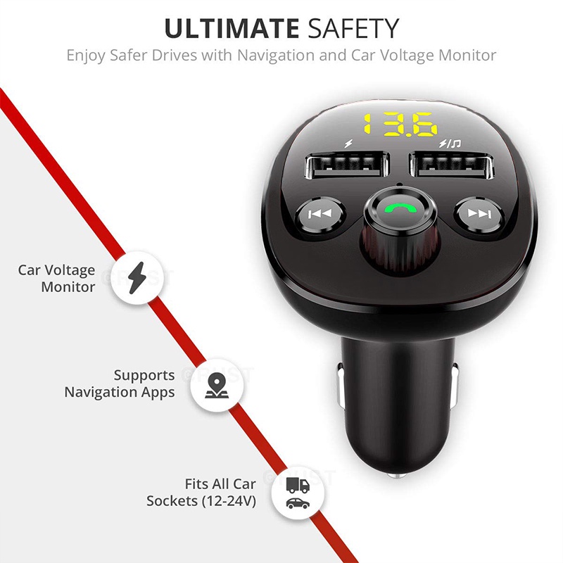 Dual USB Charging Port 3.1A Car Bluetooth Radio FM Transmitter Charger Backlit Atmosphere Light MP3 Player Handsfree