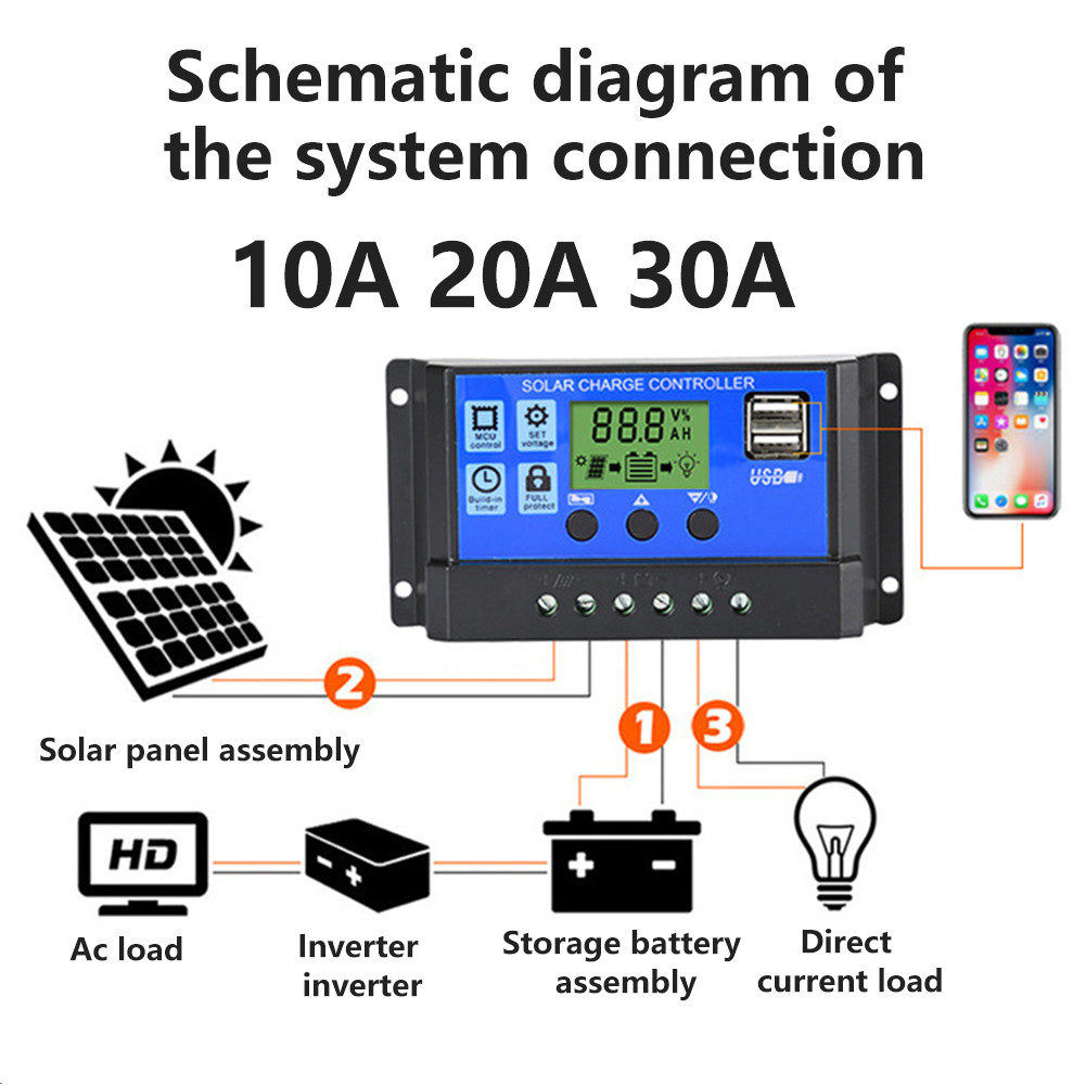 Dual USB LCD Display PWM Solar Panel Controller Battery Charger Charge Solar Controller Regulator