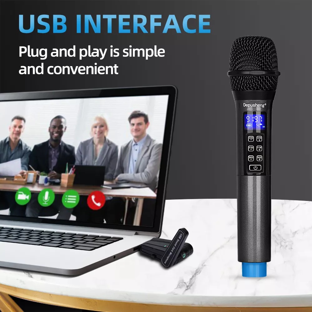 Dual Wireless Microphone System Professional Handheld UHF Microphone with USB interface with Wireless Receiver for Karaoke Notebook Computer Video Meeting