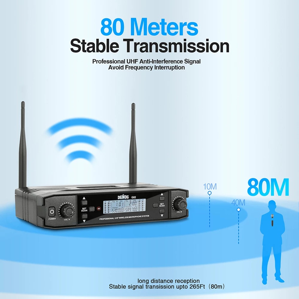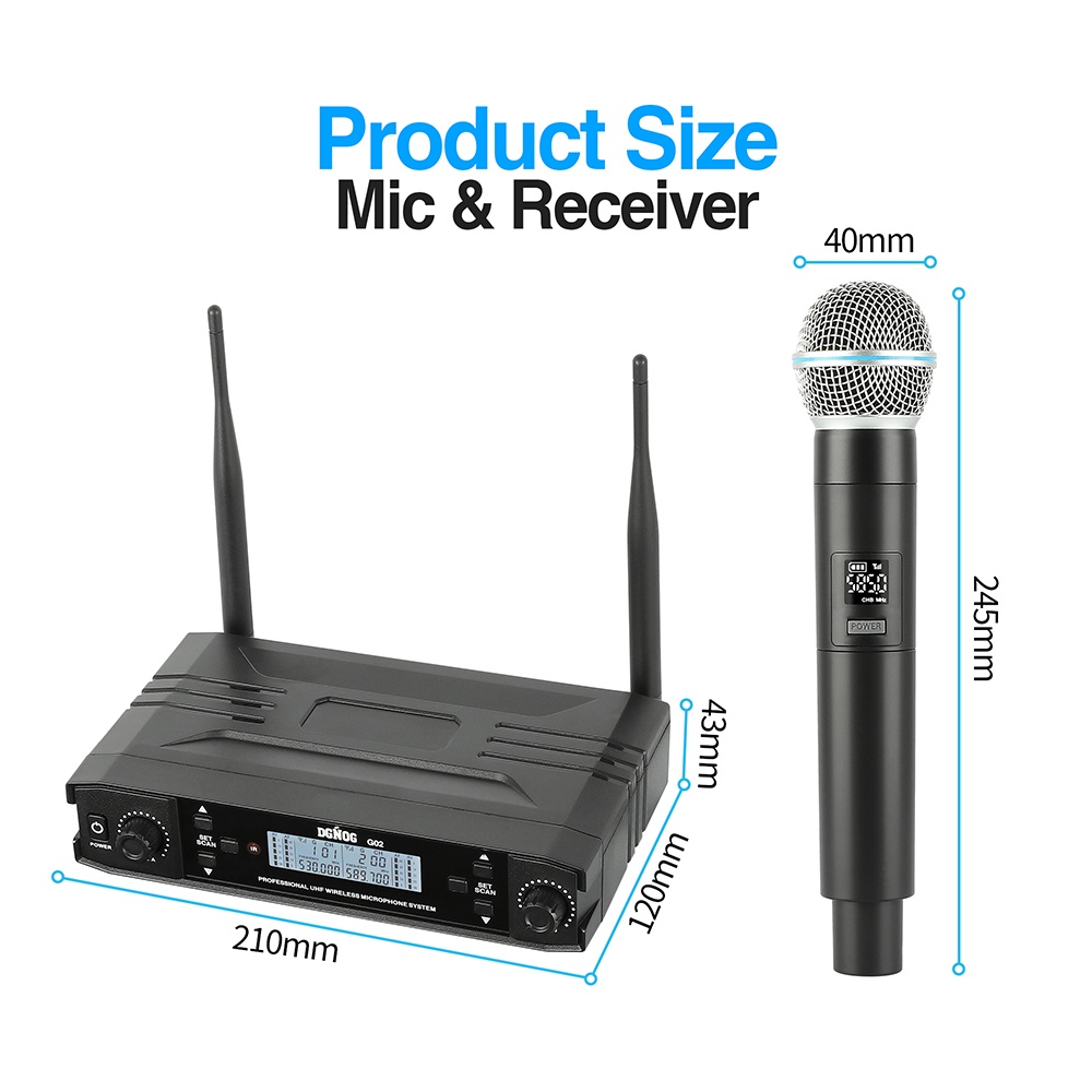 Dual Wireless Microphone for Karaoke UHF 2 Channel Wireless Microphone System for Party Church Home Professional Handheld Mic