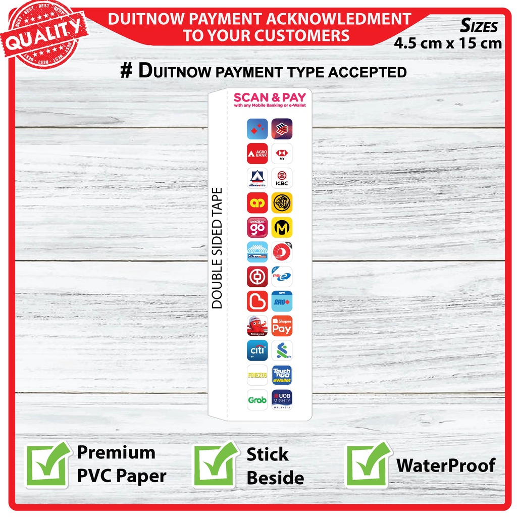 Duitnow Side Payment Type PVC Paper (Show Customer payments accepted by Duitnow)