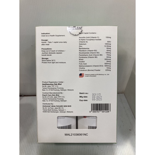 DuoLeaf Colostrum B-Complex Plus (2x45 caplets )