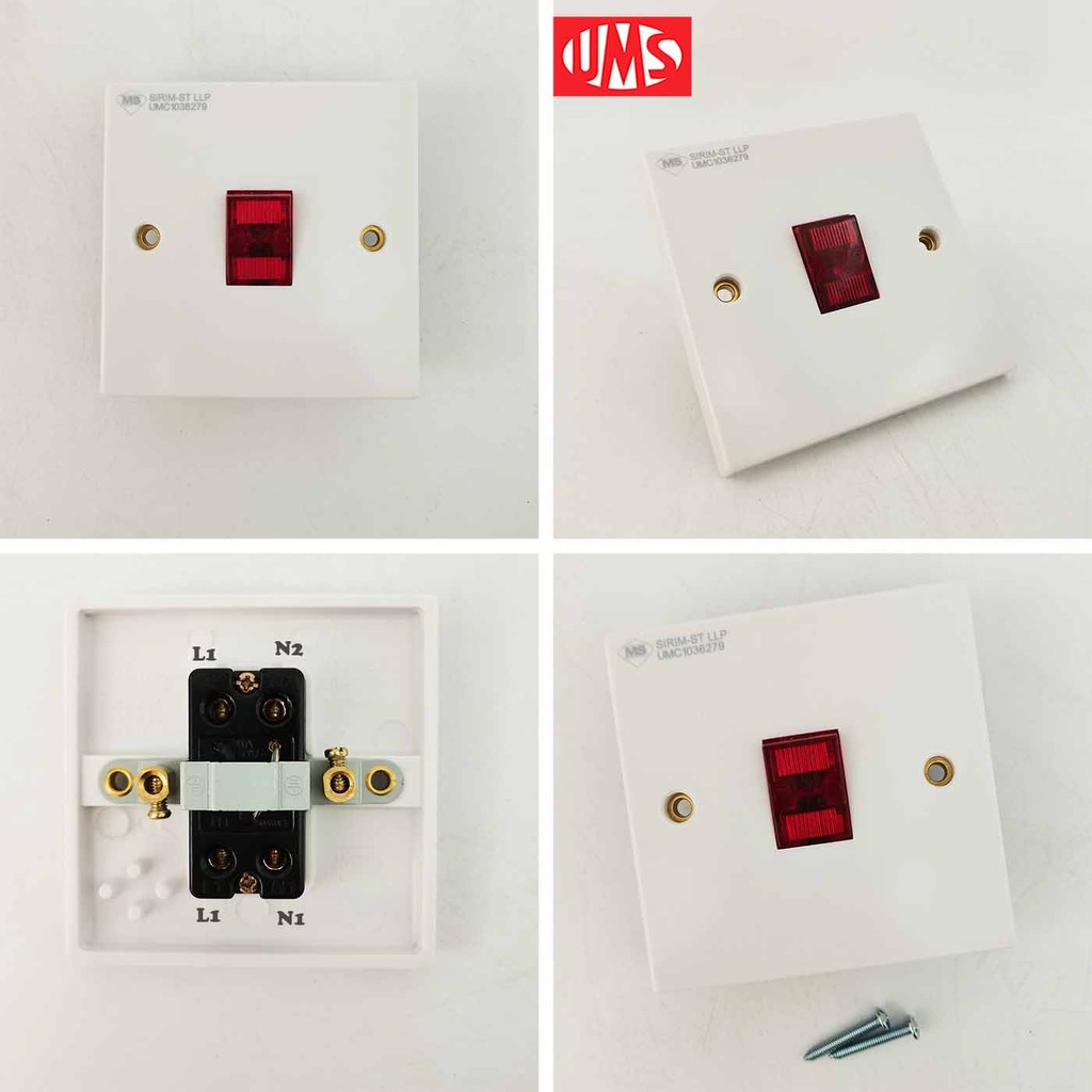 Durable UMS 20A Double Pole Switch With Neon For Water Heater And Air Conditioner