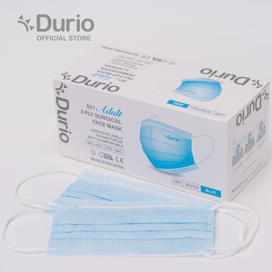 Durio 501 Adult 3 Ply Surgical Face Mask (50 Pcs)