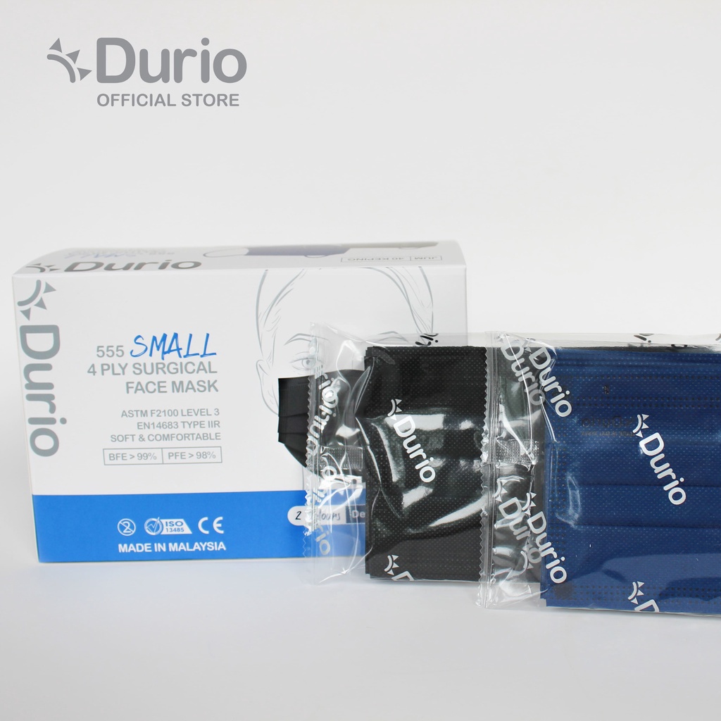 Durio Authorised Reseller Durio 555 Small 4 Ply Surgical Face Mask For Smaller Face (40 Pcs)