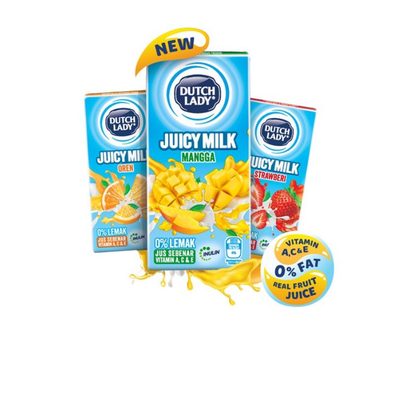 Dutch Lady Juicy Milk ORANGE/MANGO/ STRAWBERRY Drink 200ml x 4 and loose