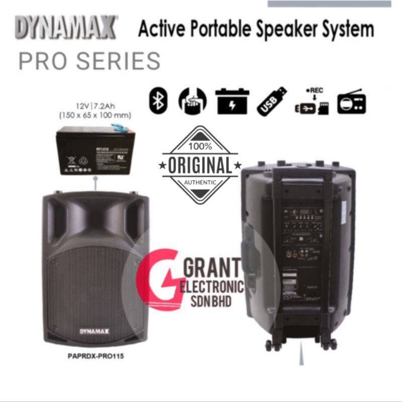 Dynamax Pro Series PRO115 15inch Portable Speaker PA System Bluetooth UHF Wireless Mic 15" 15 inch (New With MCMC)