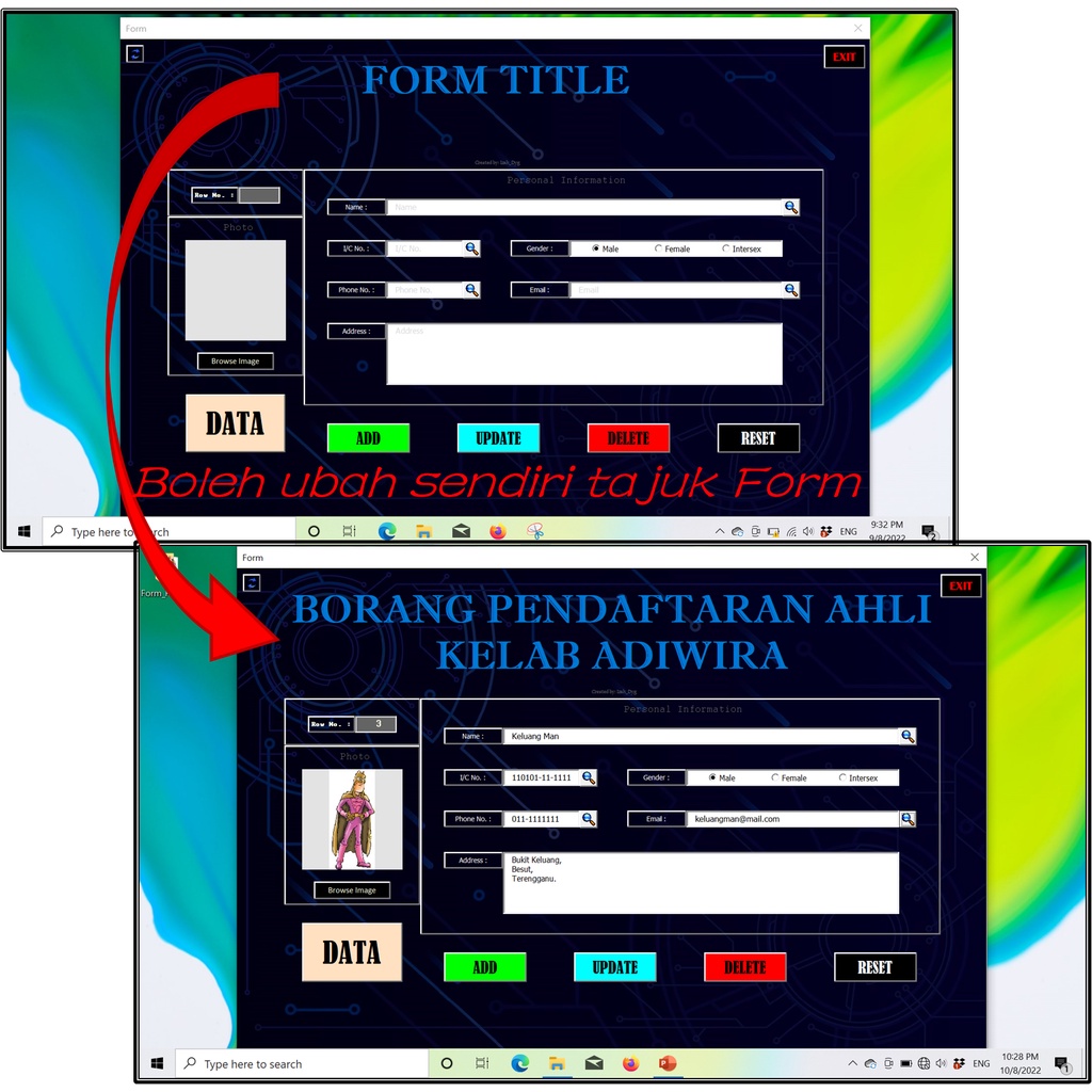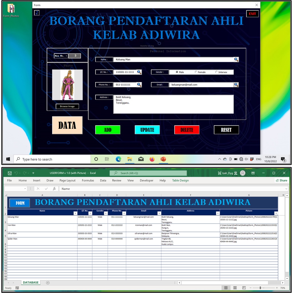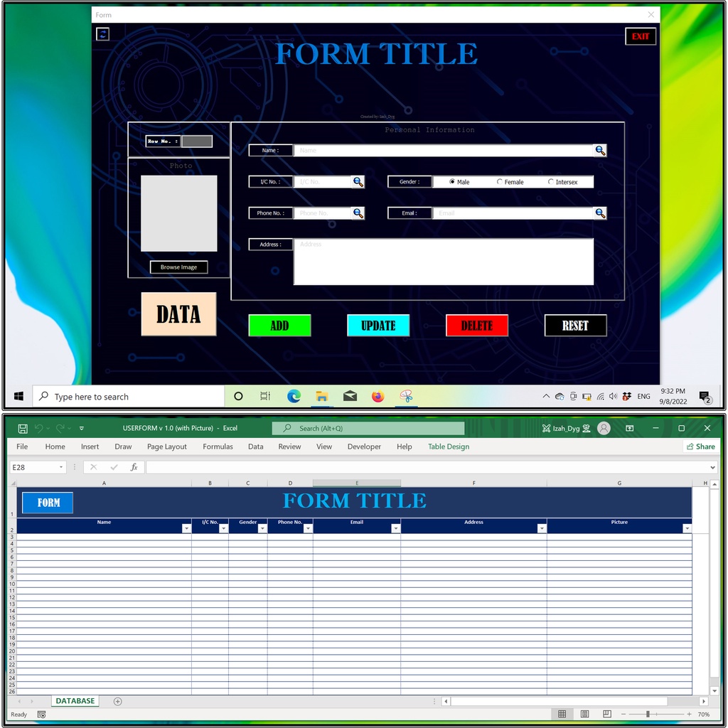 Dynamic UserForm v1.0 Data Entry Form Registration Form Borang Pendaftaran Digital Form in Excel with Macro