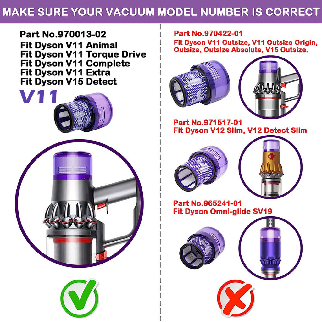 Dys Cordless Vacuum cleaner Filter For V6 V7 V8 V10 V11 V12 V15 Slim Pre Post Filter Washable Filter replacement Dyson