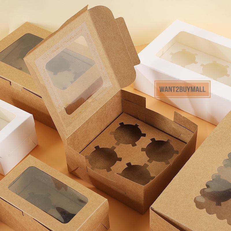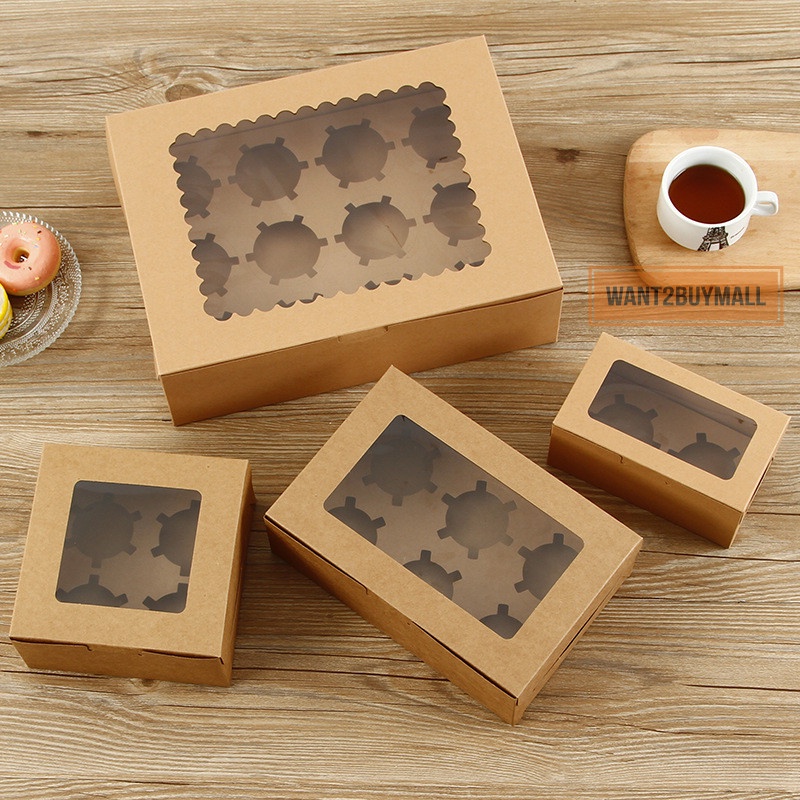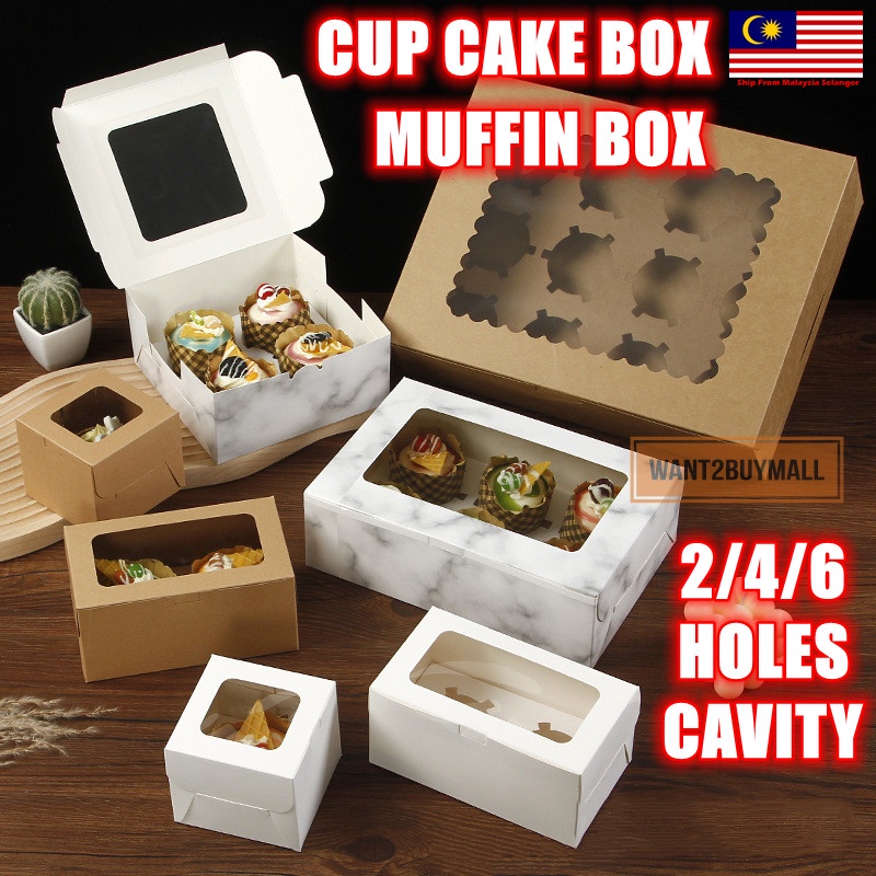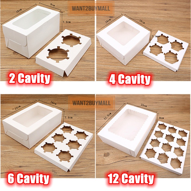 2//4/6/12 Holes Cavity Cupcake Muffin Box Egg Tart Kotak Kuih Transparent Plain Cup Cake Flexi Cavity Food Storage 蛋挞盒