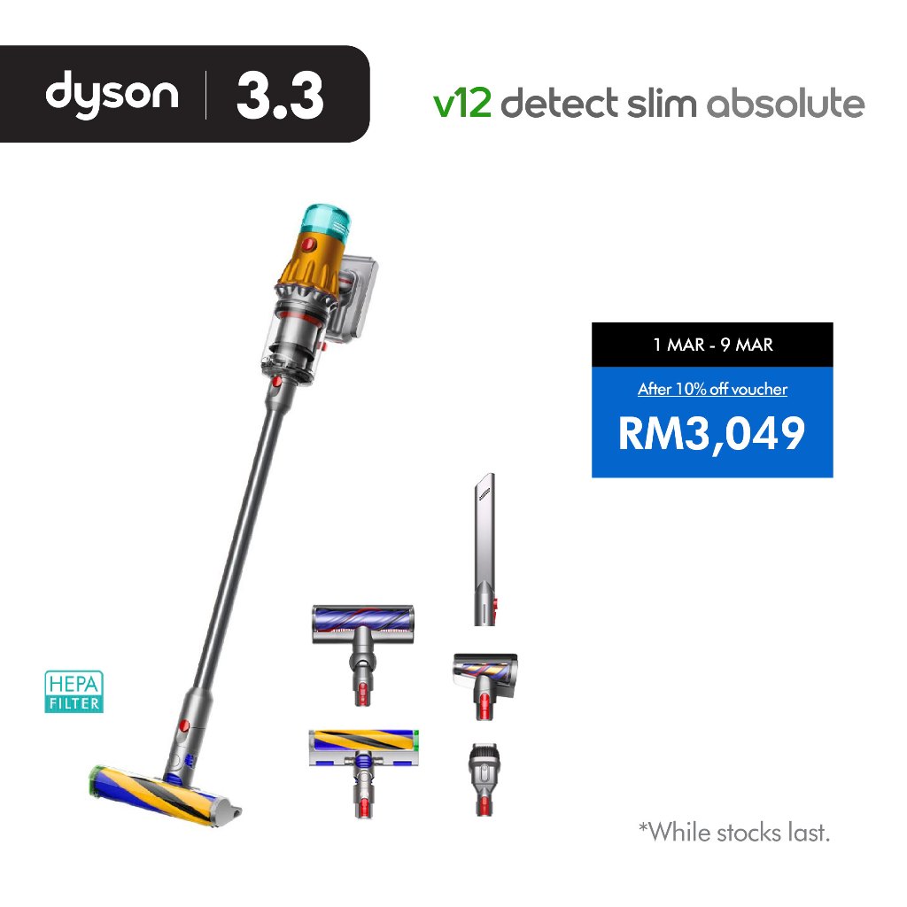 Dyson V12 Detect Slim Absolute HEPA Cordless Vacuum Cleaner |HEPA | Reveals 2x insivible dust |Anti-Tangle|Vakum Lantai