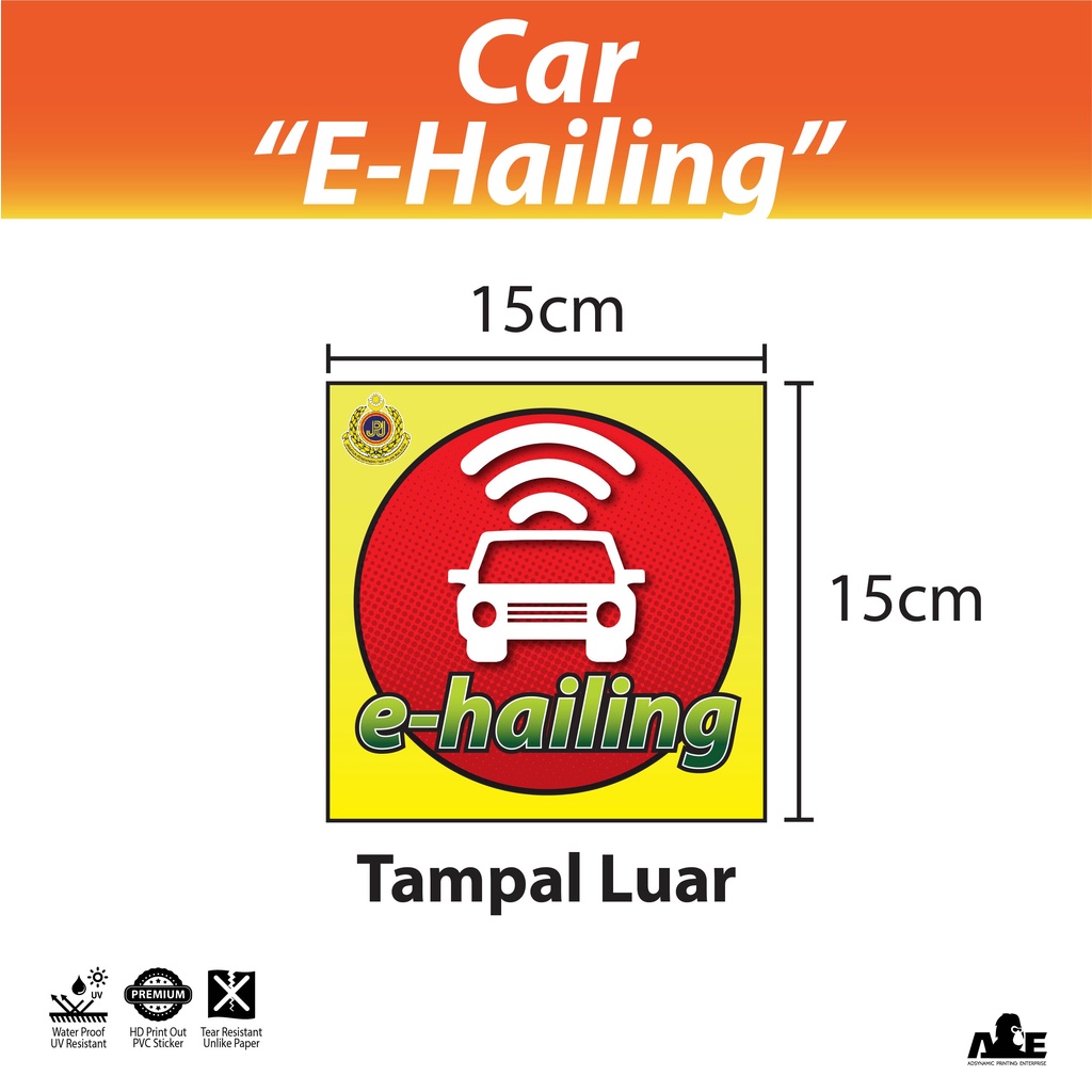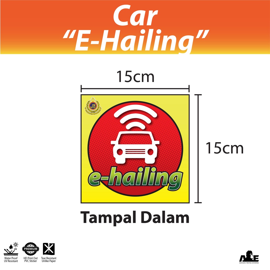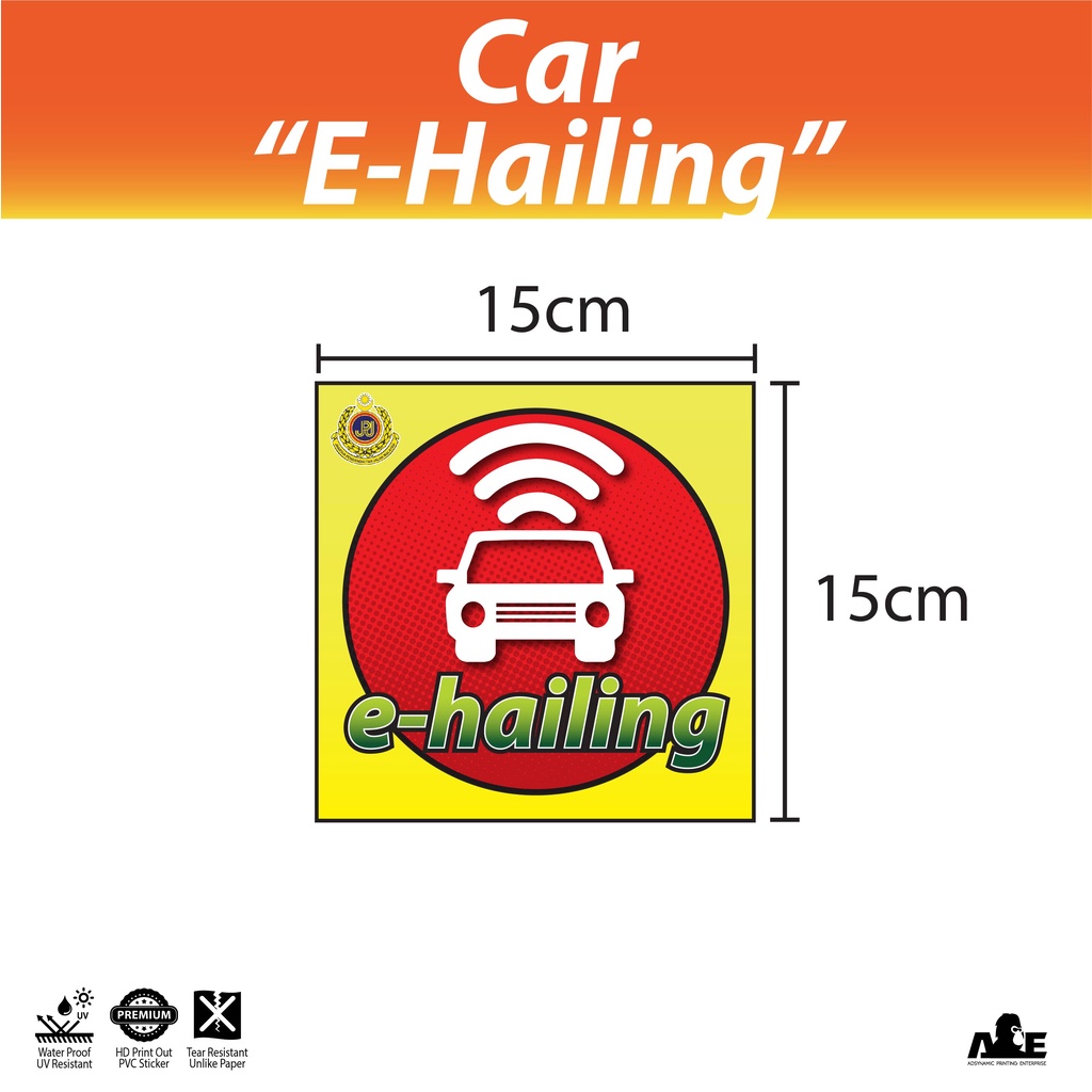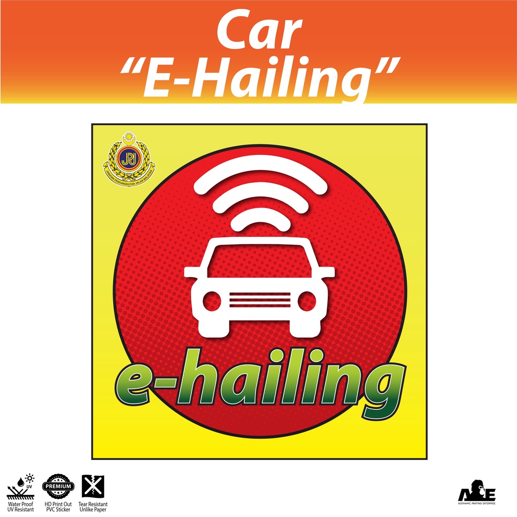 E-Hailing | Sticker | Static Cling | Car | Kereta | JPJ Size | Tahan Lama | Kalis Air