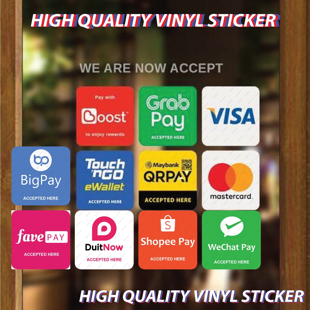 E-wallet Stickers, Malaysia E-wallets PVC Stickers, Ewallet accepted here