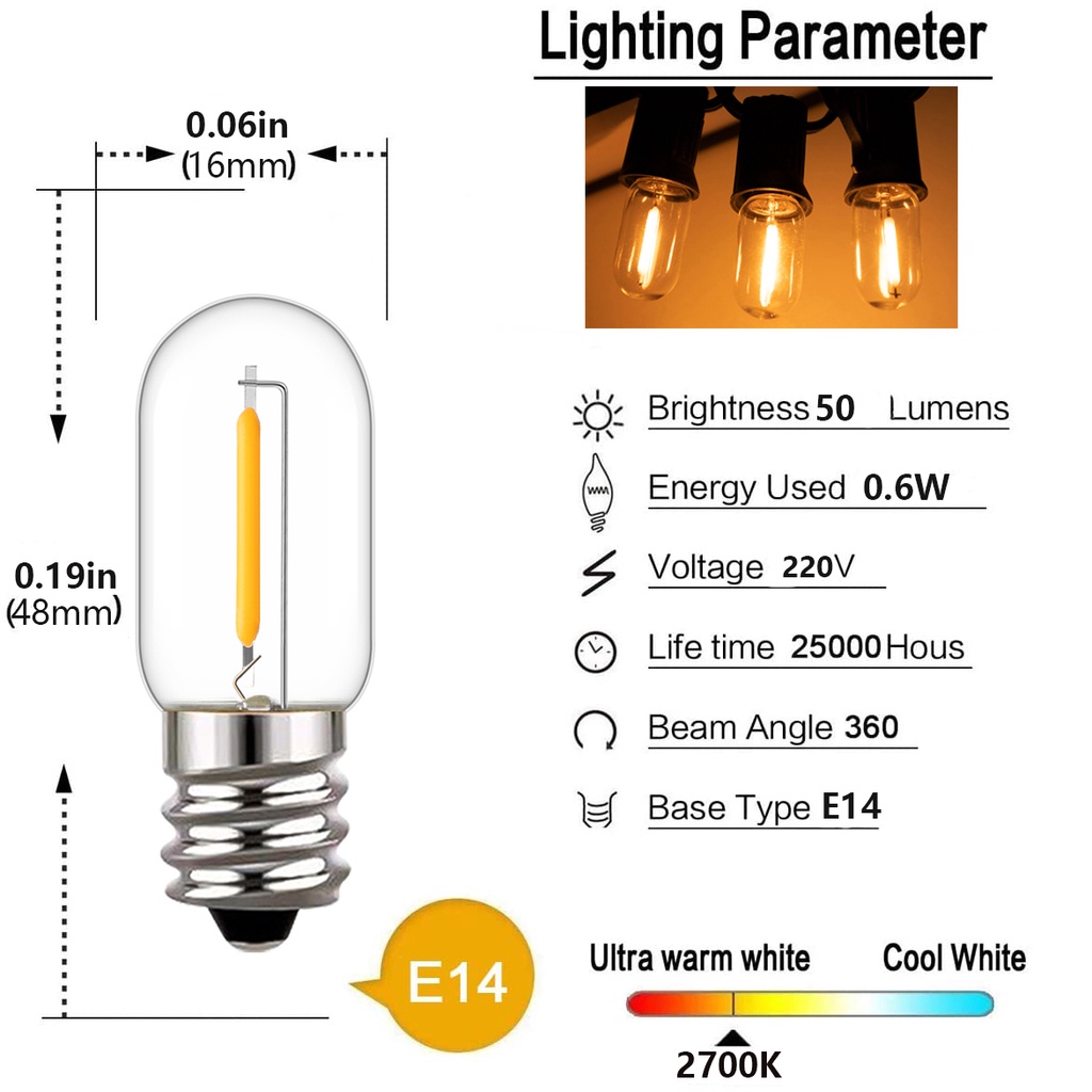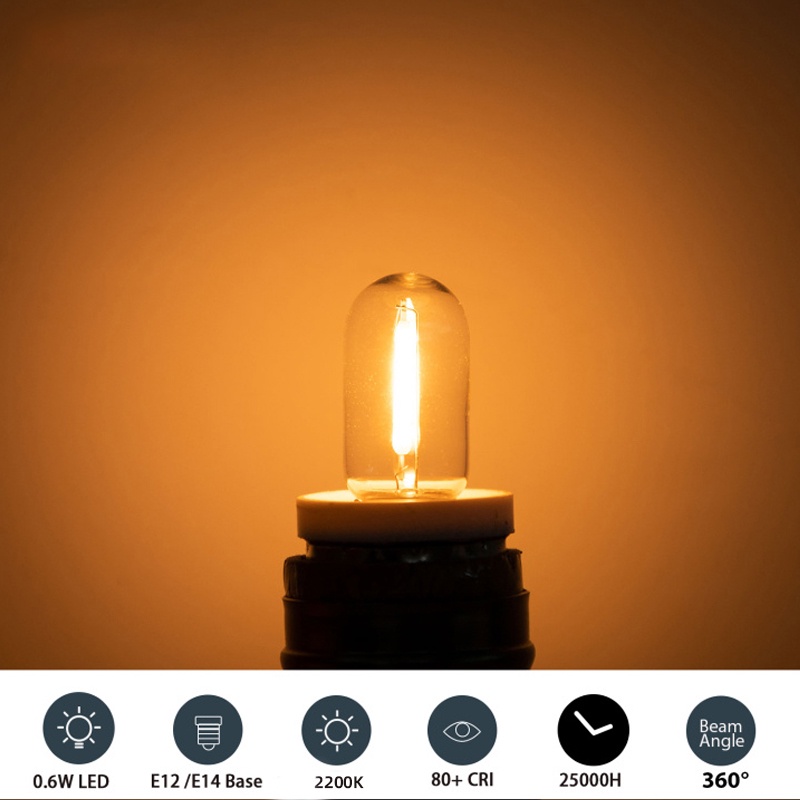 E12 E14 LED Filament Light Bulb T16 0.6W Edison Bulb 220V Energy Saving LED Lamp Bulb Dimmable 2200K Warm White Led bulb for home