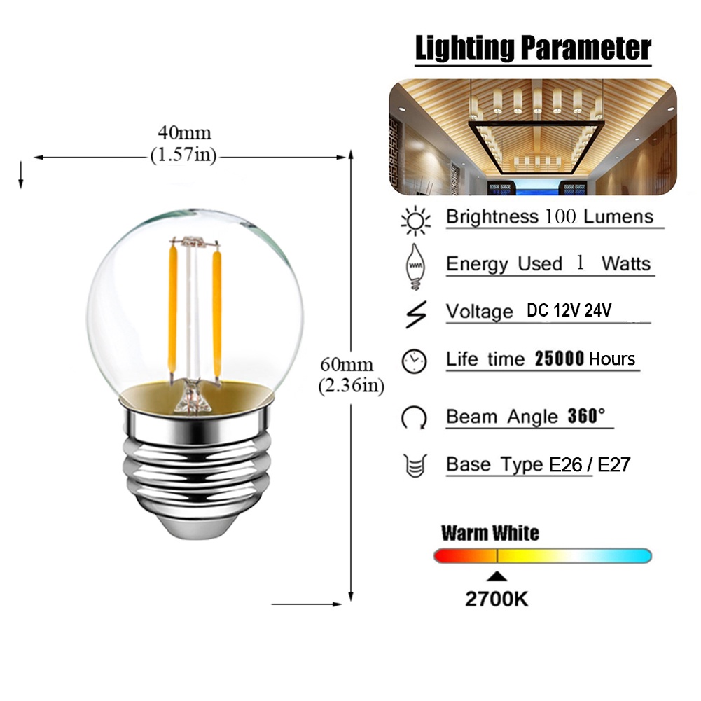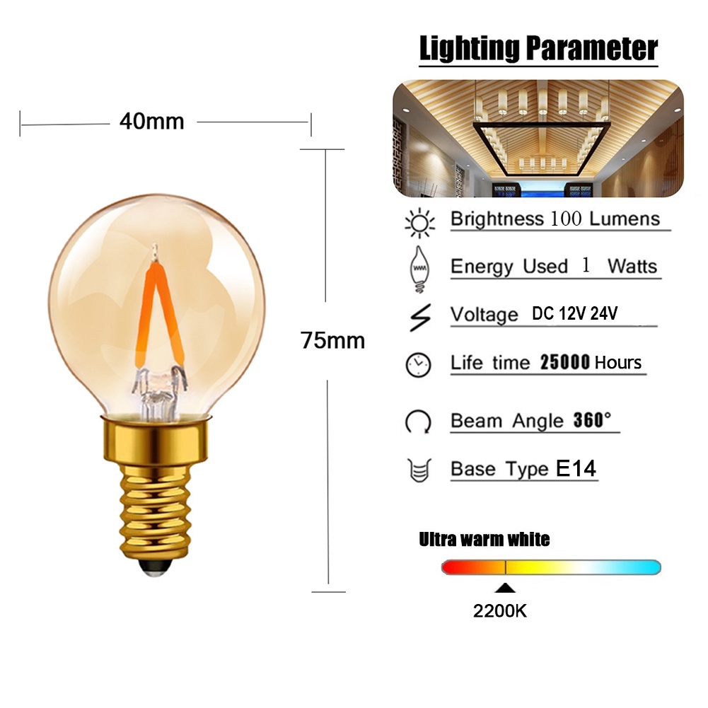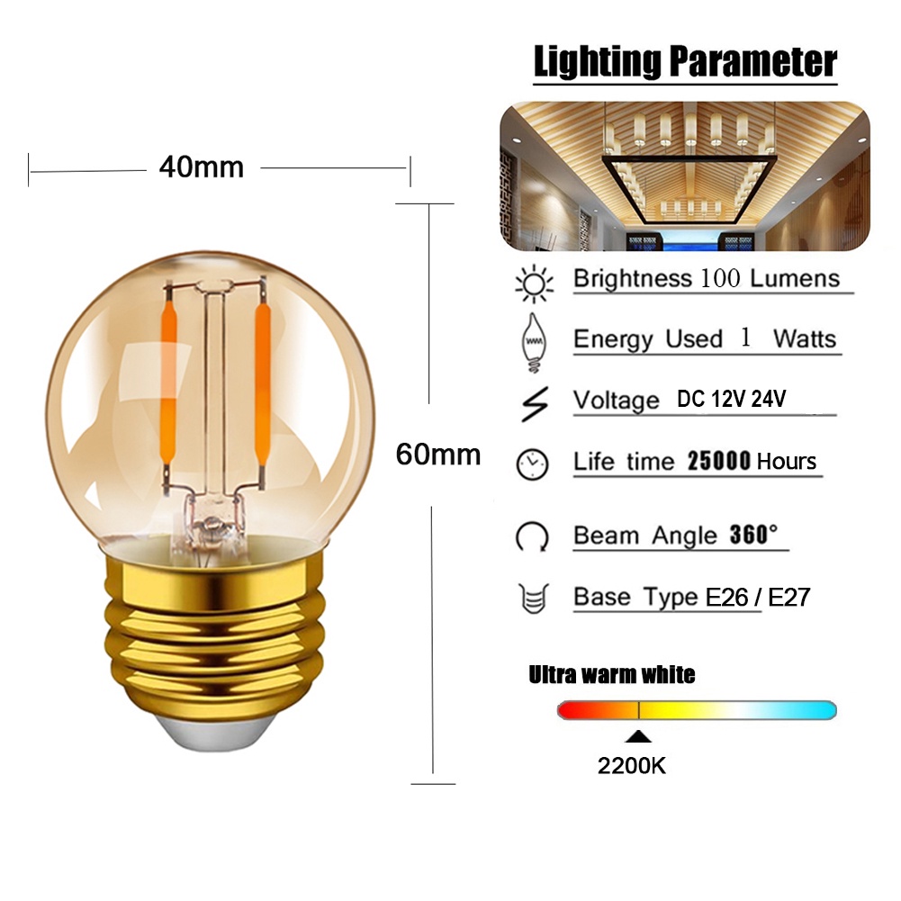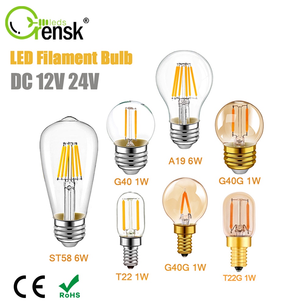 E27 DC 12V 24V LED Light Bulb A19 G40 T22 ST58 Low Voltage Filament Bulb E12 E14 1W 6W Warm White Led Edison Bulb for Home Camping Outdoor Night Market