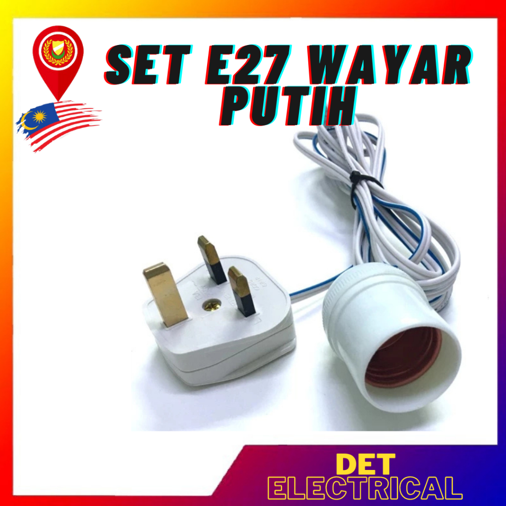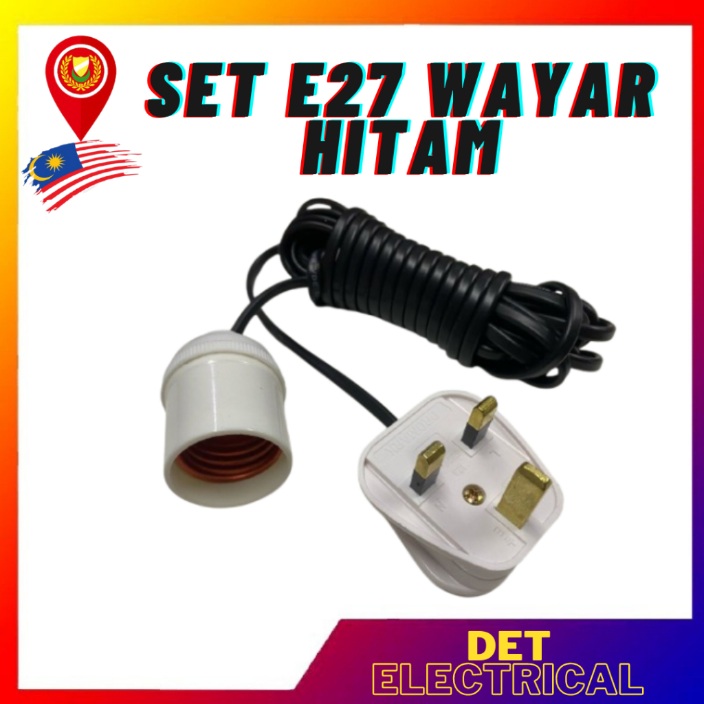 E27 Lamp Holder with twin wire and 3 pin plug complete set wire with e27 holder and wire black/white