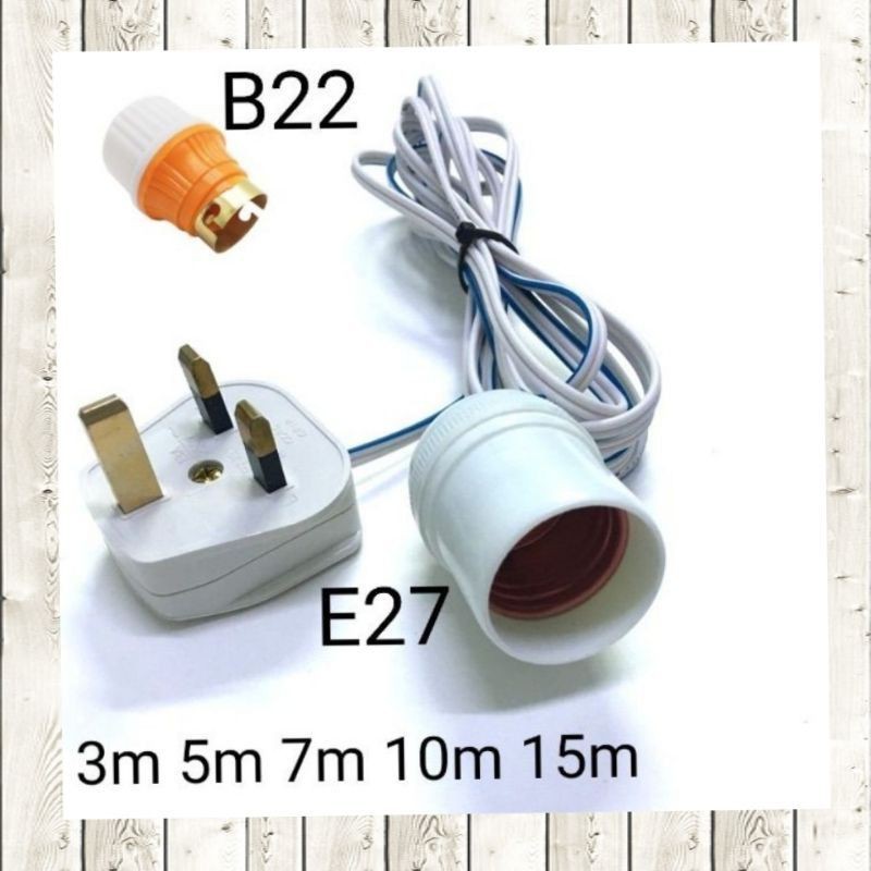 E27 Lamp Holder with twin wire and 3 pin plug complete set wire with e27 holder