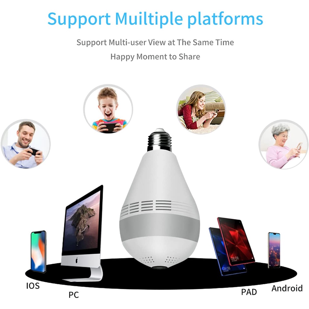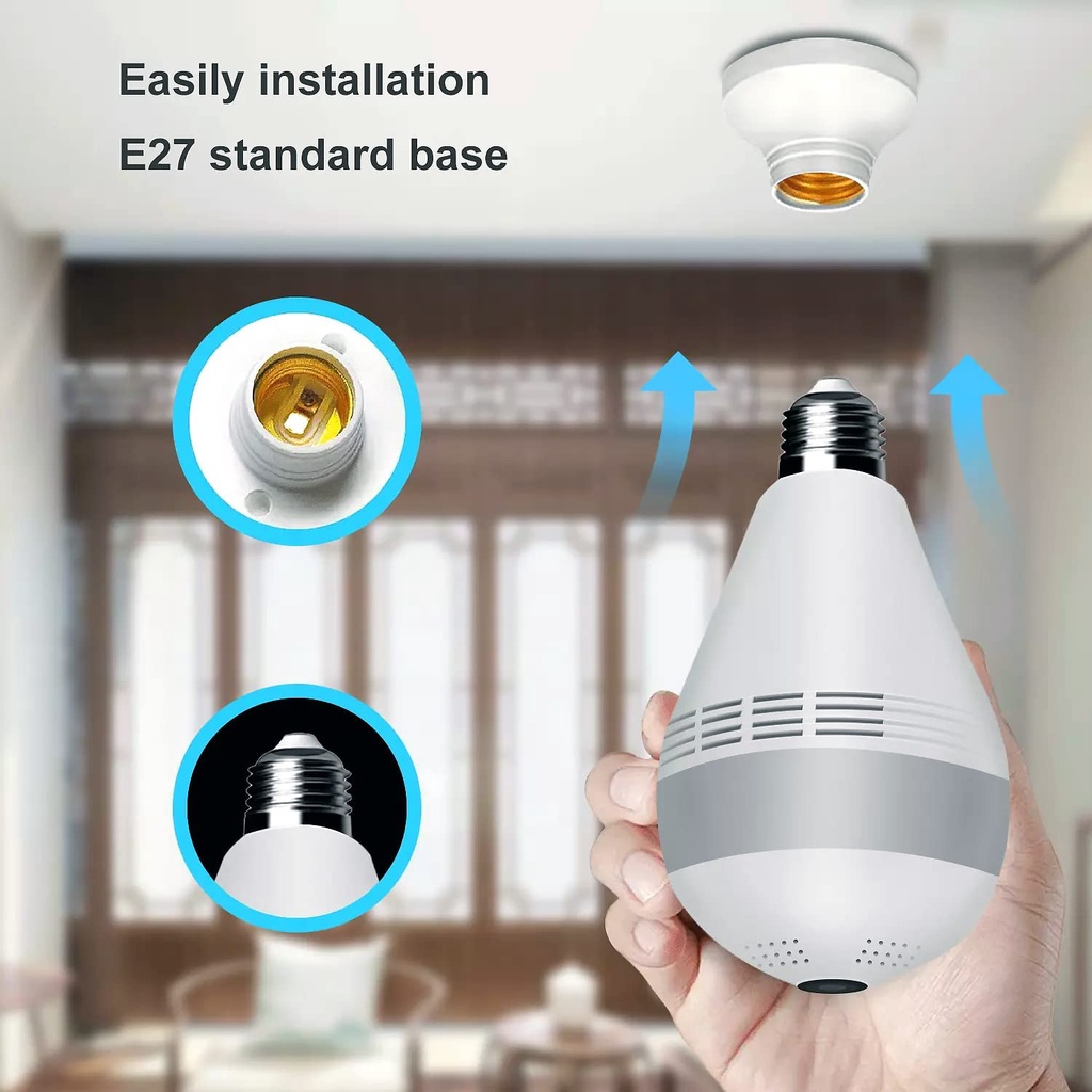 E27 Light Bulb Socket WIFI IP Security Camera 1080P FHD Night Vision , 2 Way Audio , V380 Pro App , AP Hotspot