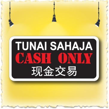 E328R CASH ONLY, TUNAI SAHAJA PP SIGN BOARD 100X200MM. WE ACCEPT CUSTOM-MAKE ORDER