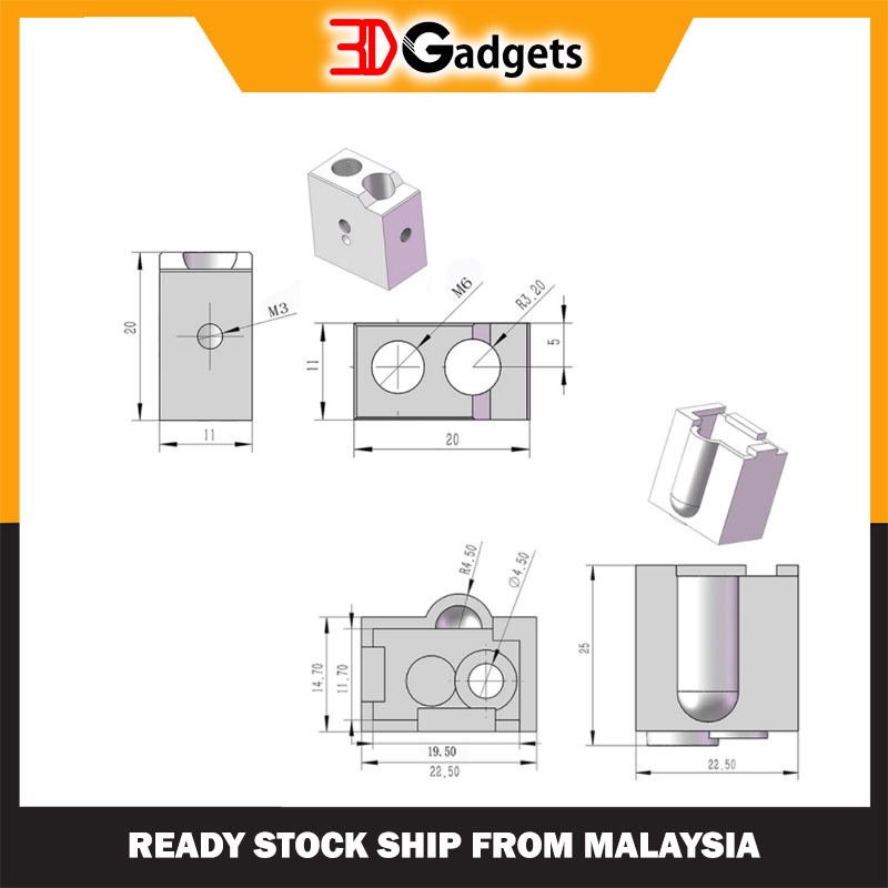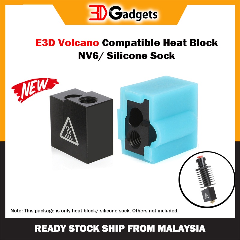 E3D Volcano Compatible Heat Block NV6 / Silicone Sock for 3D Printer