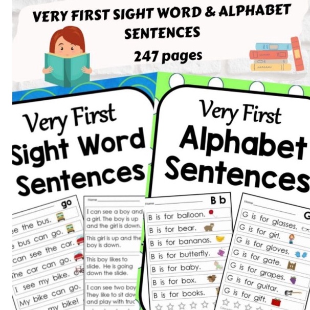 E5 Very First Alphabet Sentences and Sight Word Sentences I 247 pages for Preschool Kindergarten