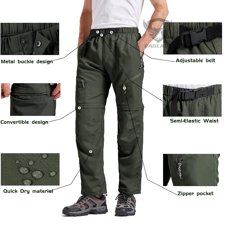 EAGLADE Tactical Cargo Hiking Cycling Fishing Pants for Men In Green Waterproof HT70H