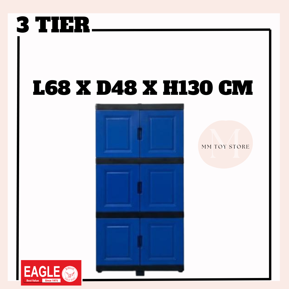 EAGLE DIY Plastic Storage Cabinet/Wardrobe/Almari Baju/Almari Serbaguna 3 Tiers Plastic Cabinet