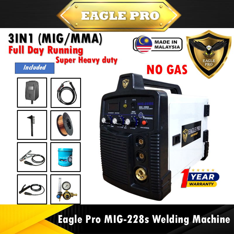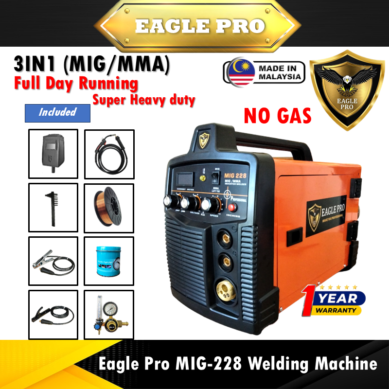 EAGLE PRO Professional 3 IN 1 MIG/MMA & GASLESS Welding Machine with Accessories MIG 228 IGBT Gas Welding Arc Welding