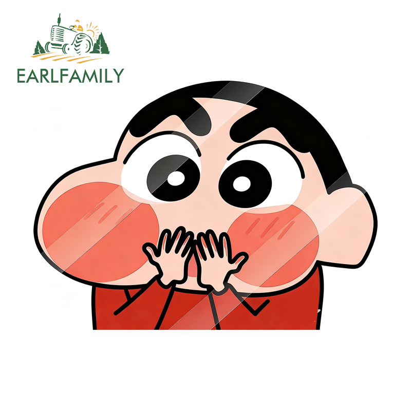 EARLFAMILY 13cm Crayon Shin-chan Cartoon Car Stickers Glass Peeker Vinyl Decal Refrigerator Motorcycle Waterproof Graphics Japanese Car Goods