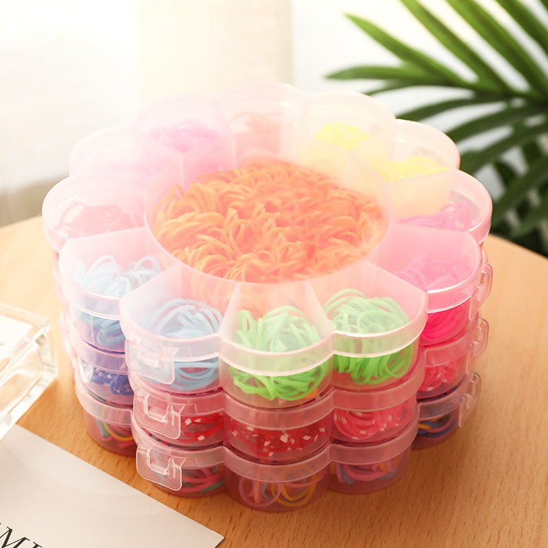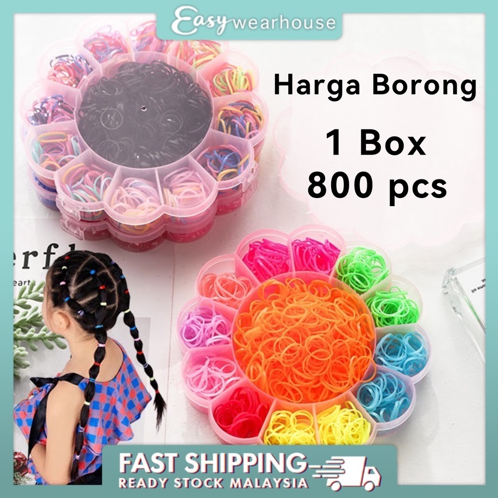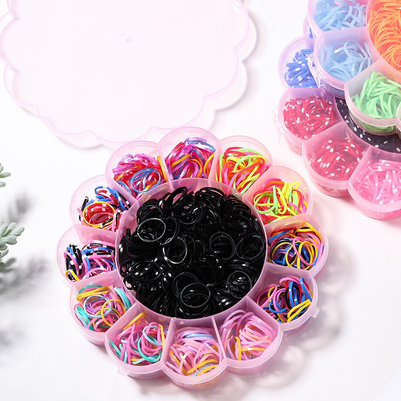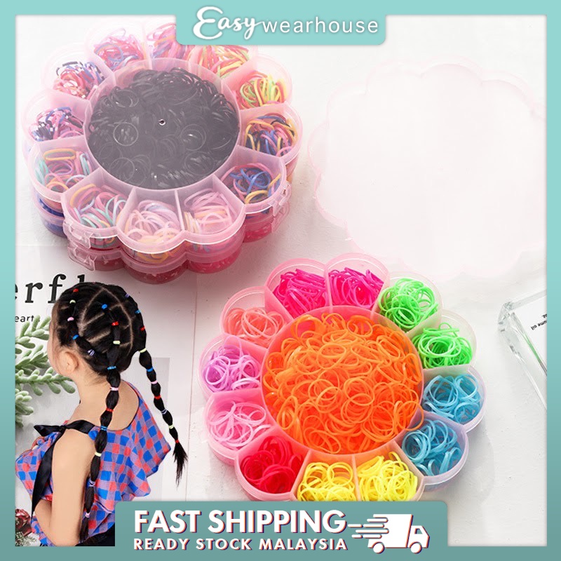 EASY WEARHOUSE 800pcs Small Disposable Girls Rubber Band with Box Colourful Hair Accessories Party Pack Birthday Gift